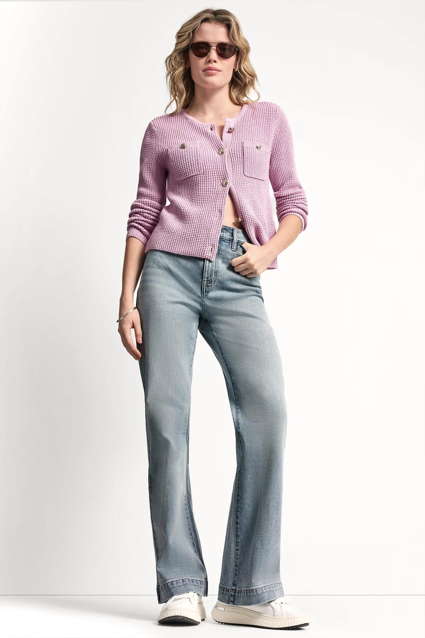 TUCK STITCH CREW NECK CARDIGAN