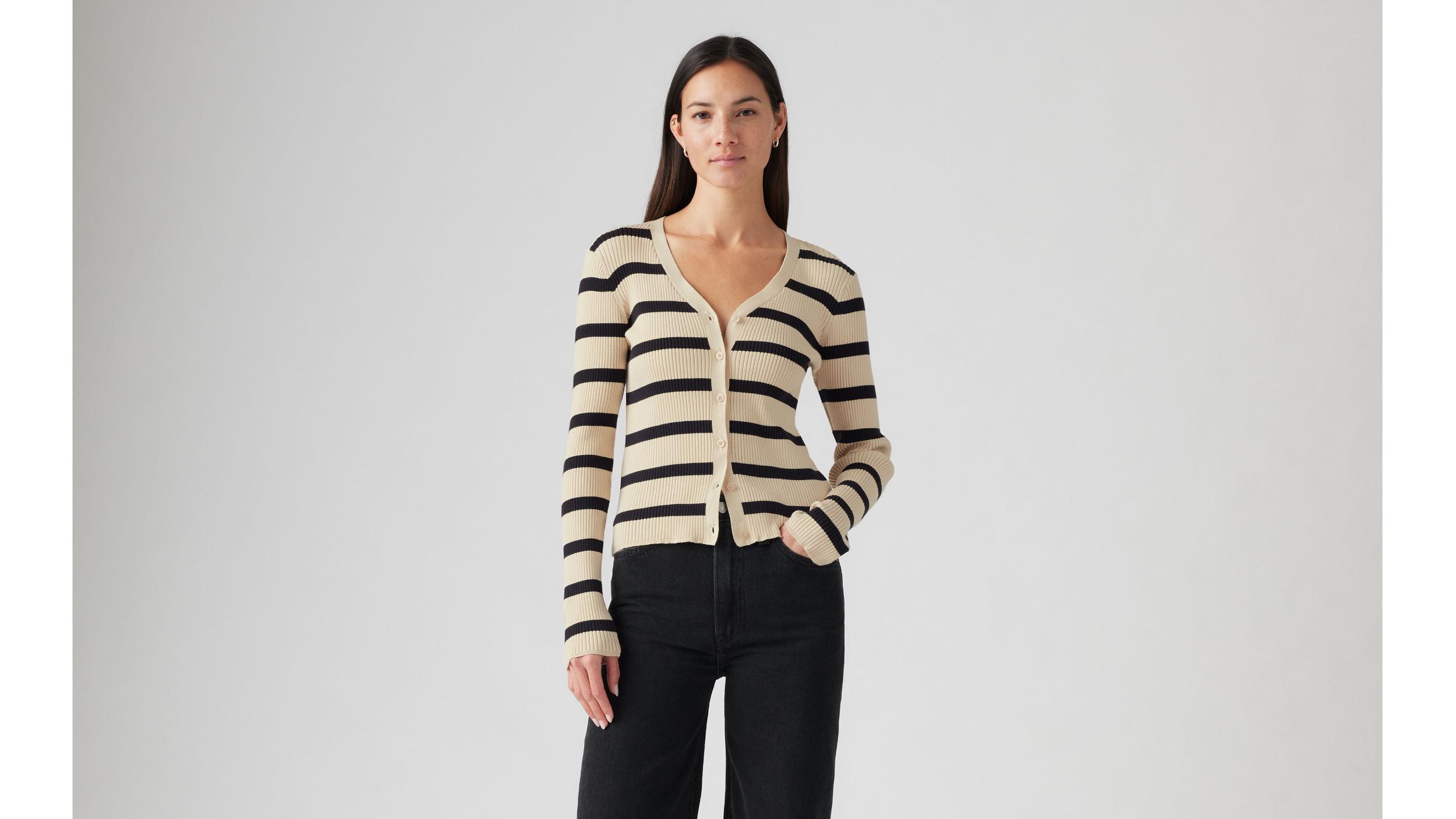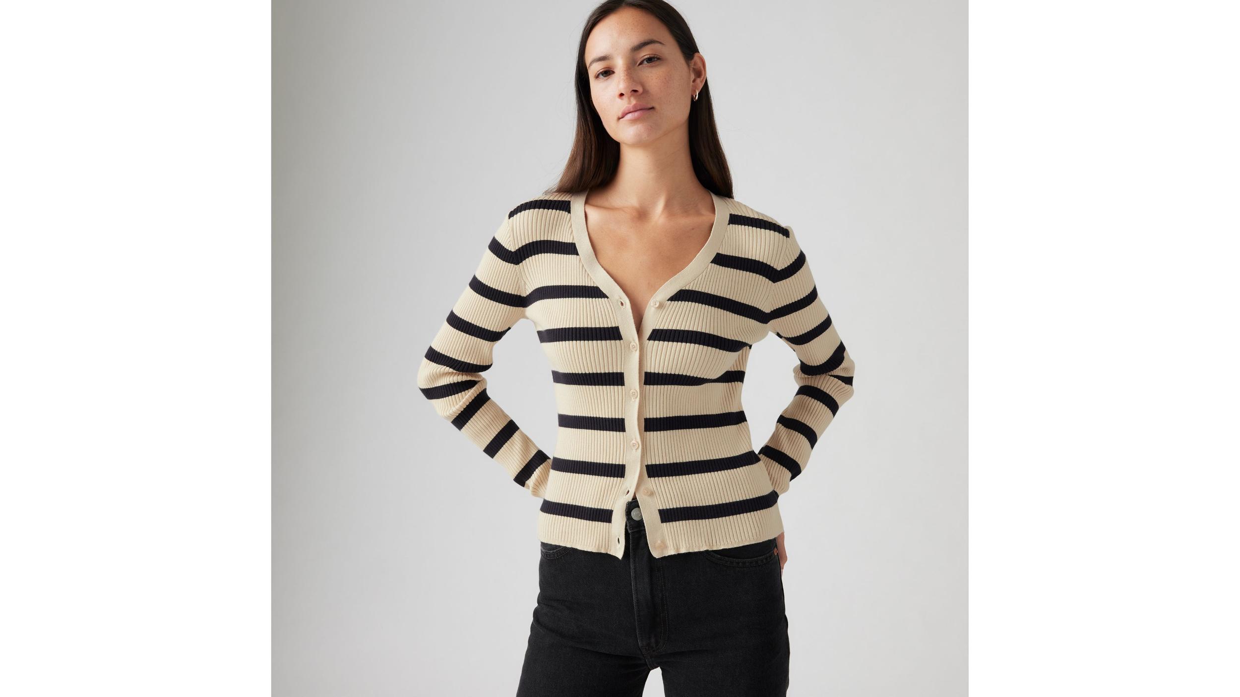 Part top, part sweater, all '90s. Our Tulip Cardigan was designed with a V-neckline, a button-up front and a flattering slim fit.A '90s-inspired sweater topCut with a slim fitFeatures a soft ribbed knitWith a button-up frontSize down for a snug fit