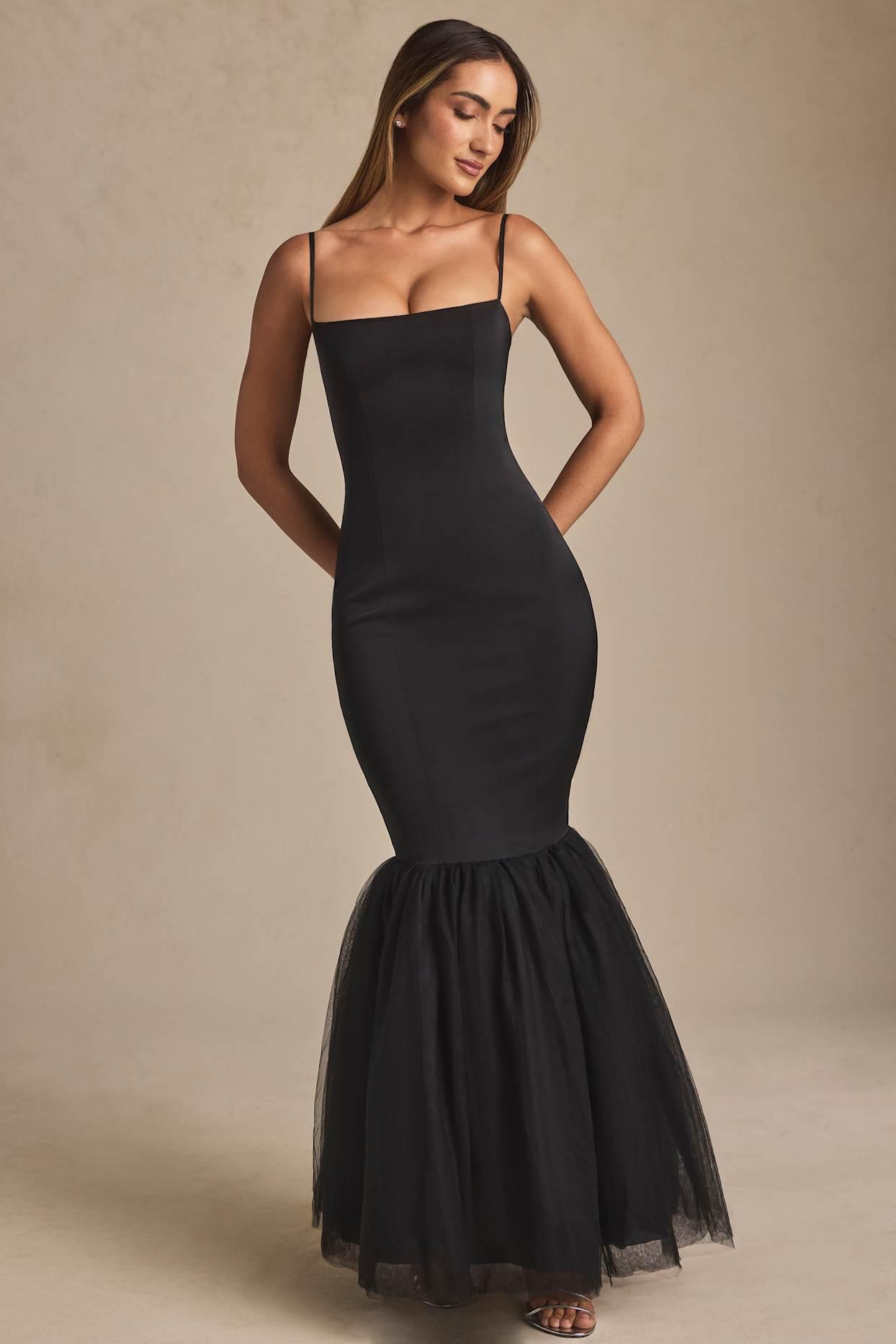 Designed to capture attention at any event, the Adelpha gown is crafted to a statement fishtail silhouette with a contrasting voluminous hem overlaid with layers of frothy tulle. It’s made from premium, lightweight slinky satin for a figure-hugging fit and is framed with a clean square neckline, complete with slender adjustable camisole straps for your perfect fit. Square neckAdjustable camisole shoulder strapsContrasting layered tulle hemConcealed side zip fasteningFishtail silhouetteMaxi length, approx. 137cm based on a UK size 8Product code: 8376