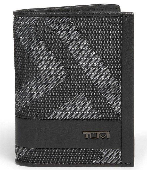 From Tumi, this card case features: Exterior Features: Premium gift box included Interior Features: Double billfold compartment 1-ID window 1x Gusseted card pocket 2 x card pockets 1 x slip pockets Other Product details: Material: polyester/leather Dimensions approx.: 4.13" H x 3.1" W x 0.7" D Spot clean Imported.