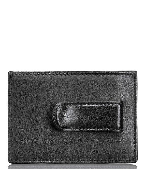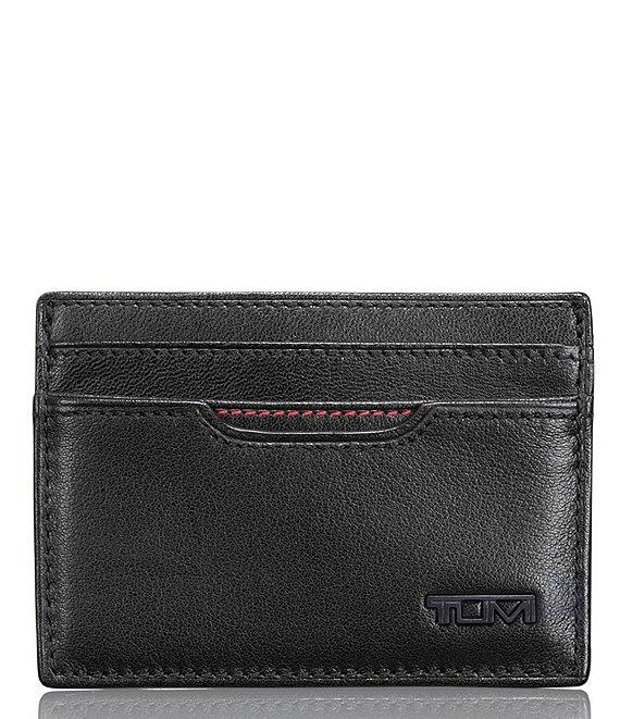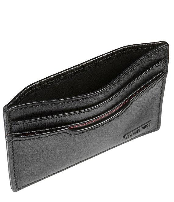 From Tumi, this Delta collection card case features: contrasting stitch detailing on the interior ballistic nylon spine easy-access front card pockets and bill section with leather back wall money clip on one side; card slots on the other Tumi ID Lock -- a proprietary technology incorporated into the design of this product that protects personal data encoded on most IDs, credit cards and passports comes in an elegant gift box 2.875" x 4" x .375" soft, full-grain napa leather Imported.