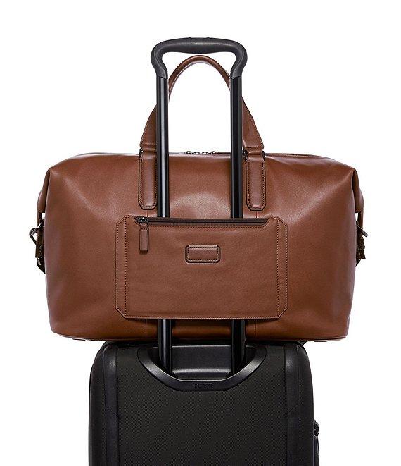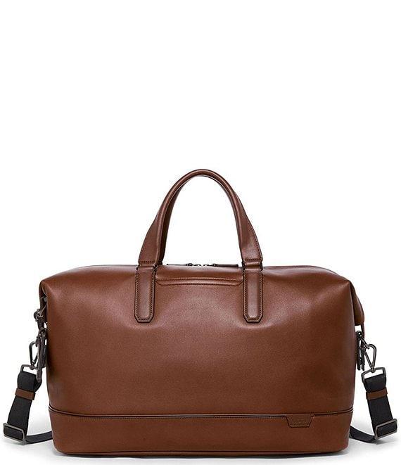 From Tumi, this duffel bag features: Exterior Features: Zip entry to main compartment Front slip pocket Rear zip pocket Leather top handle Removable & adjustable shoulder strap with leather shoulder pad Monogram patch Luggage tag Add-a-Bag strap Leather feet Interior Features: Zip pocket 2 x open pockets Key leash TUMI Tracer® Dimensions: 11.0" x 20.5" x 8.5" Expanded Depth: 0.0" Weight: 4.1 lb. Leather Imported.