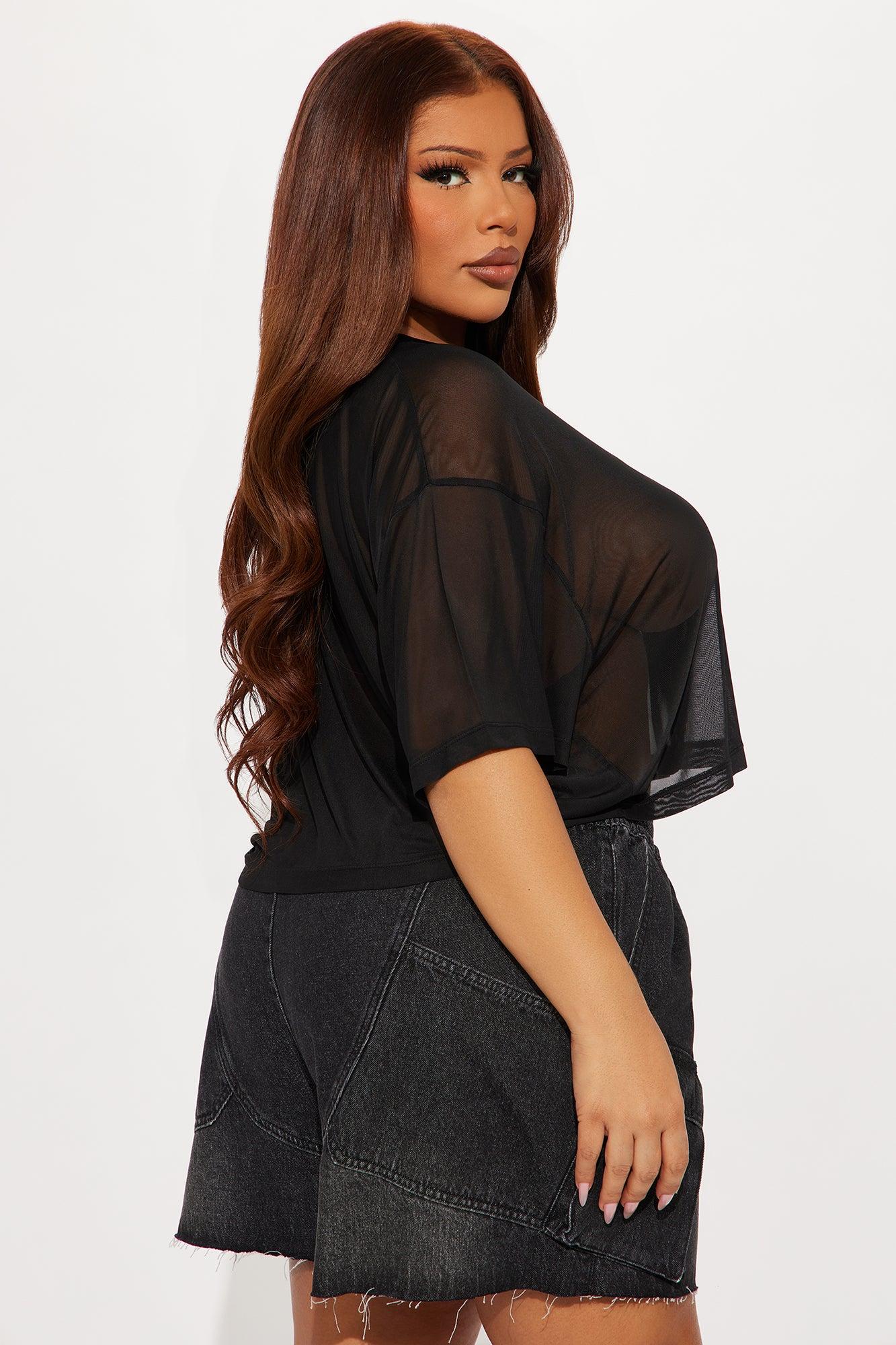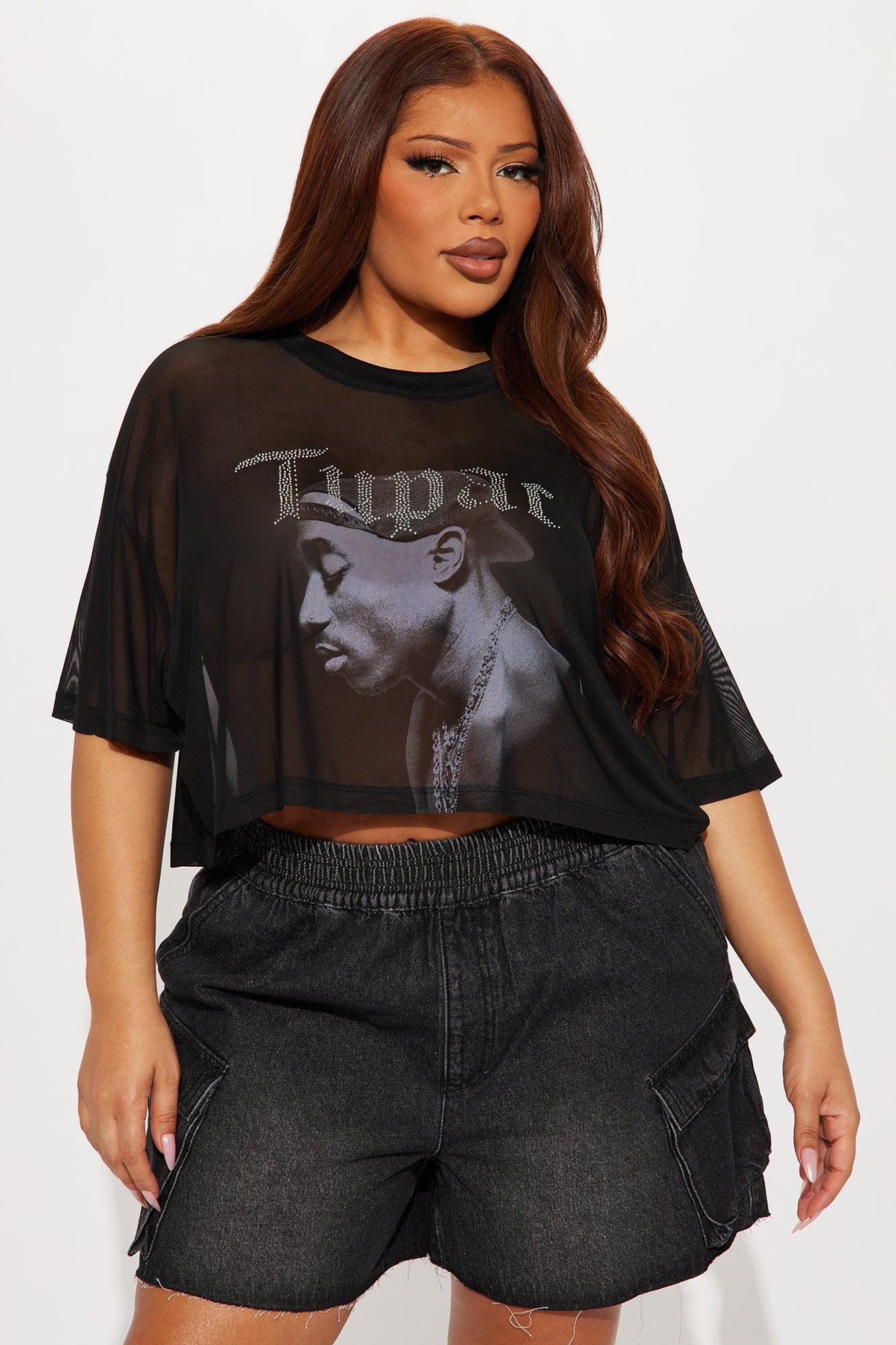 Tupac Mesh Rhinestone Cropped Tee - Black