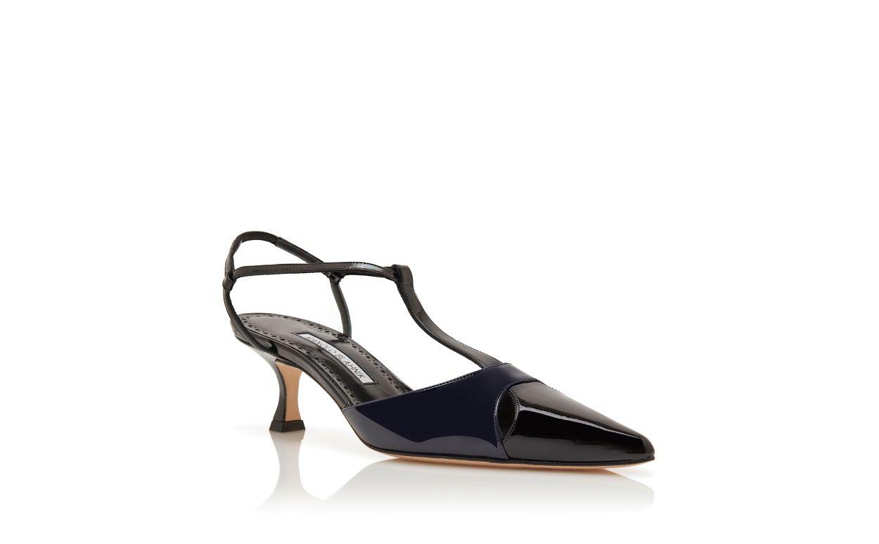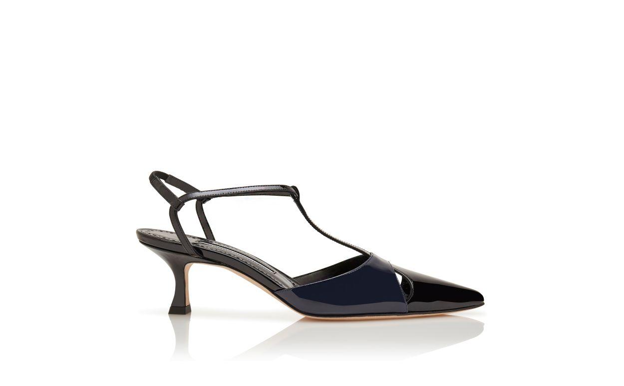 TURGIMOD Black and Navy Blue Patent Leather T-Bar Pumps