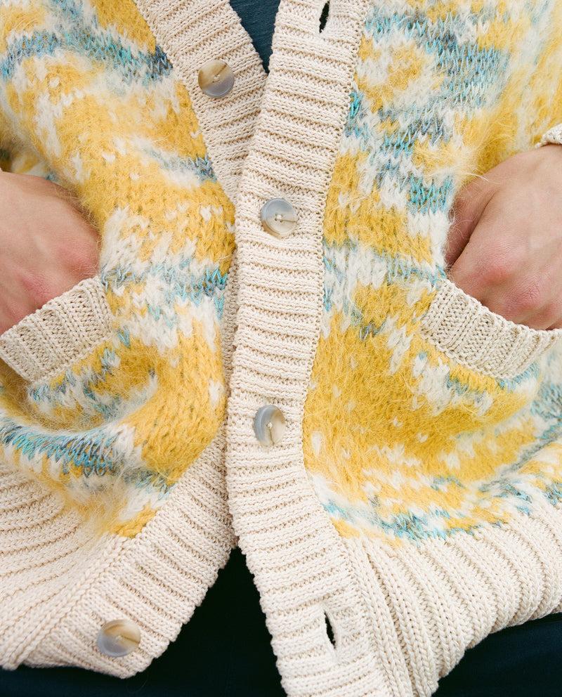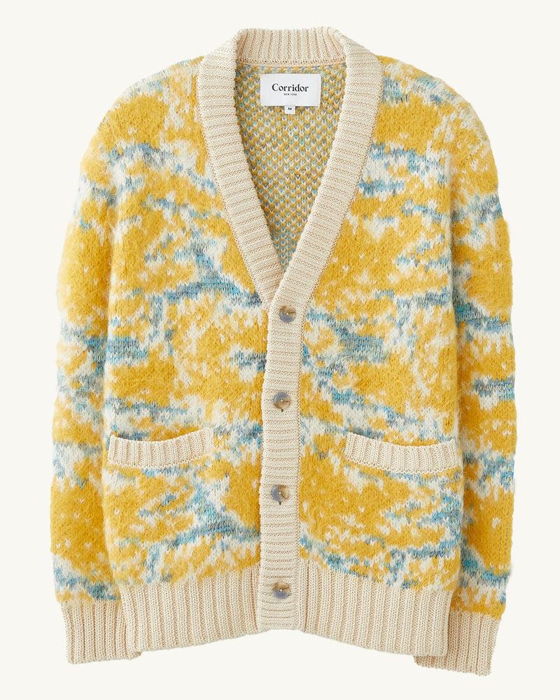 Inspired by J.M.W. Turner: the palette translates his luminous, weather-washed skies into diffused, layered color, creating a camouflage with a painterly feel. Combined with a plush heavyweight blend, it provides loft, warmth, and softness. 54% Pima Cotton, 34% Suri Alpaca, 10% Wool, 2% Polyamide Specialty brushed he