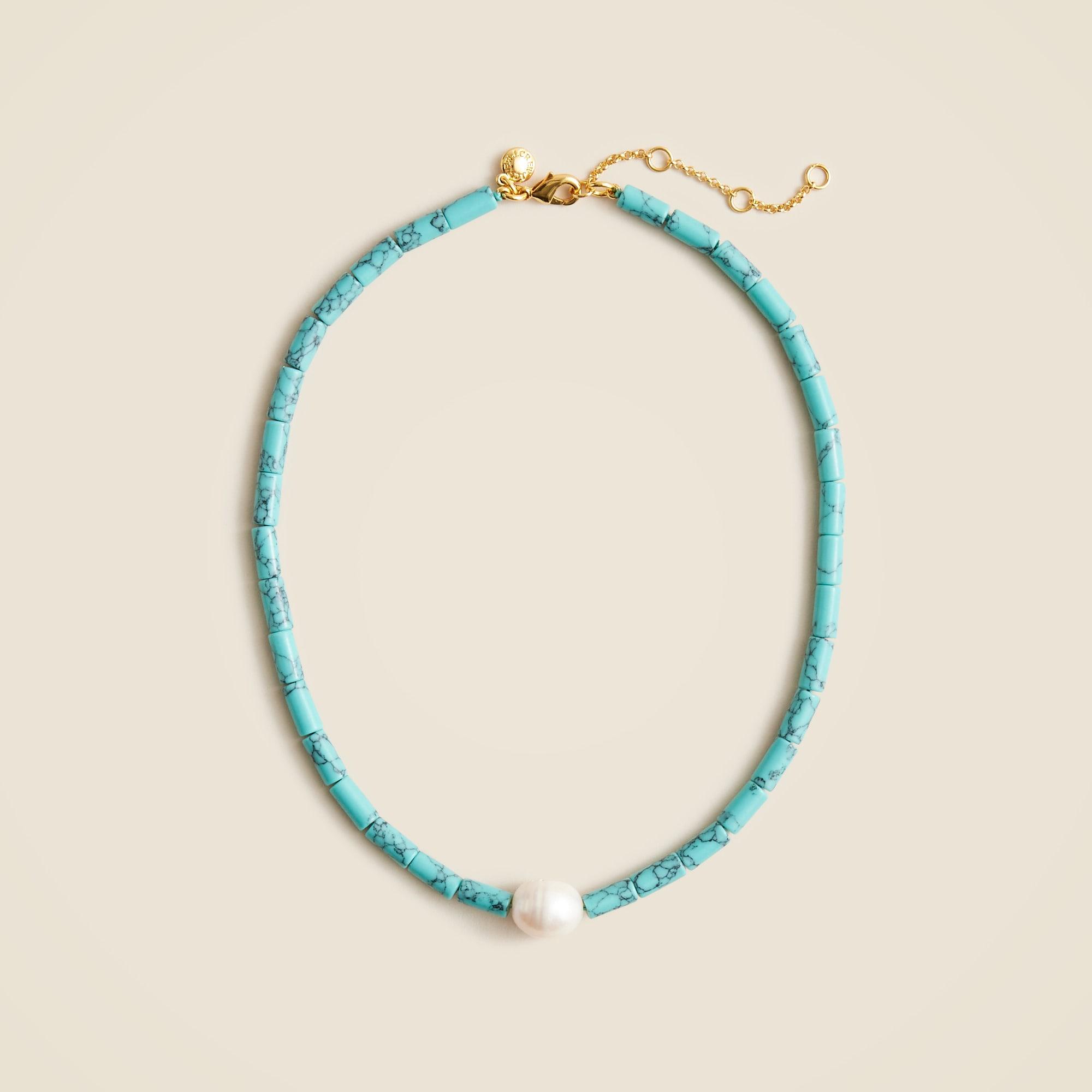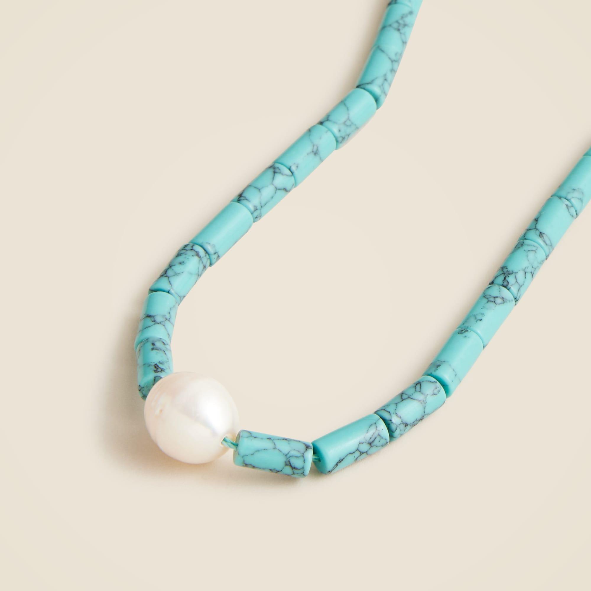 Turquoise bead freshwater pearl necklace