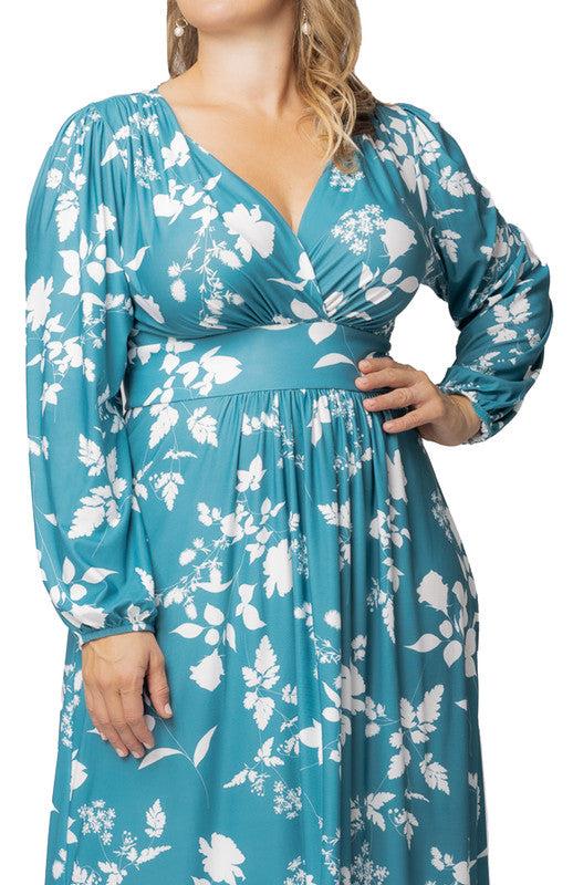 The Kelsey Long Sleeve Maxi Dress exudes sophistication. This curve-flattering maxi dress marries style and comfort in a soft yet substantial stretch jersey fabric. It features an empire waist, flowing A-line skirt, flattering V-neck, long cuffed sleeves and side slits for movement.