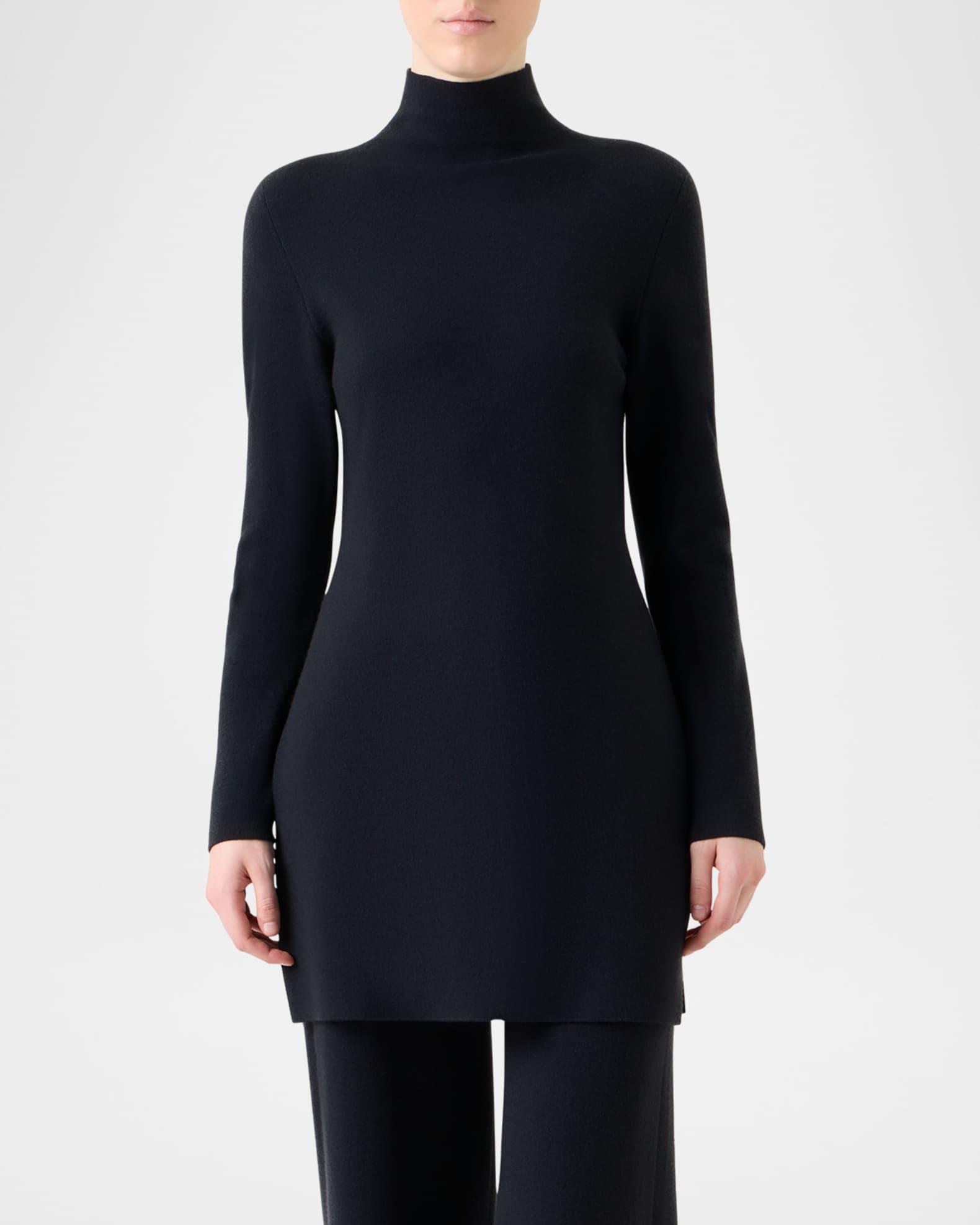 Turtleneck Cashmere-Silk Milano Knit Tunic Sweater