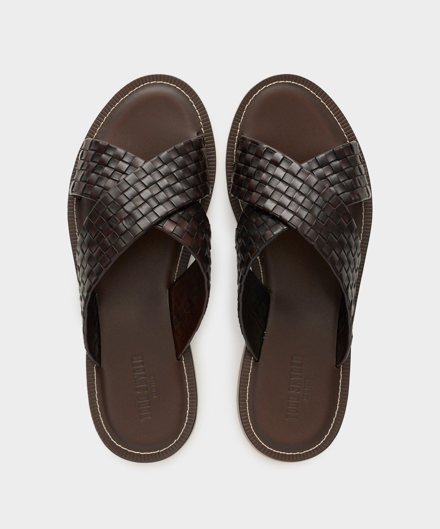 Todd was looking for a sandal that reminded him of summers in Italy, something casual but elegant that could go from a slow morning at home to a walk along the water to dinner with friends…so he made one. Our Leather Sandals are handcrafted by artisans in Tuscany using traditional techniques. Both the footbed and woven, crossed straps are made from Italian leather, with raw cut edges that give this sandal an artisanal look. The sole features a rubber top lift, for better traction. These are an easy option for any warm-weather look, versatile enough to take you from day to night — and dressy enough for summer weddings, too. Fits true to size Italian leather Rubber top Raw cut edges Made in Tuscany, Italy Wipe clean, no water Leather color will lighten with wear and sun exposure. Style SND012