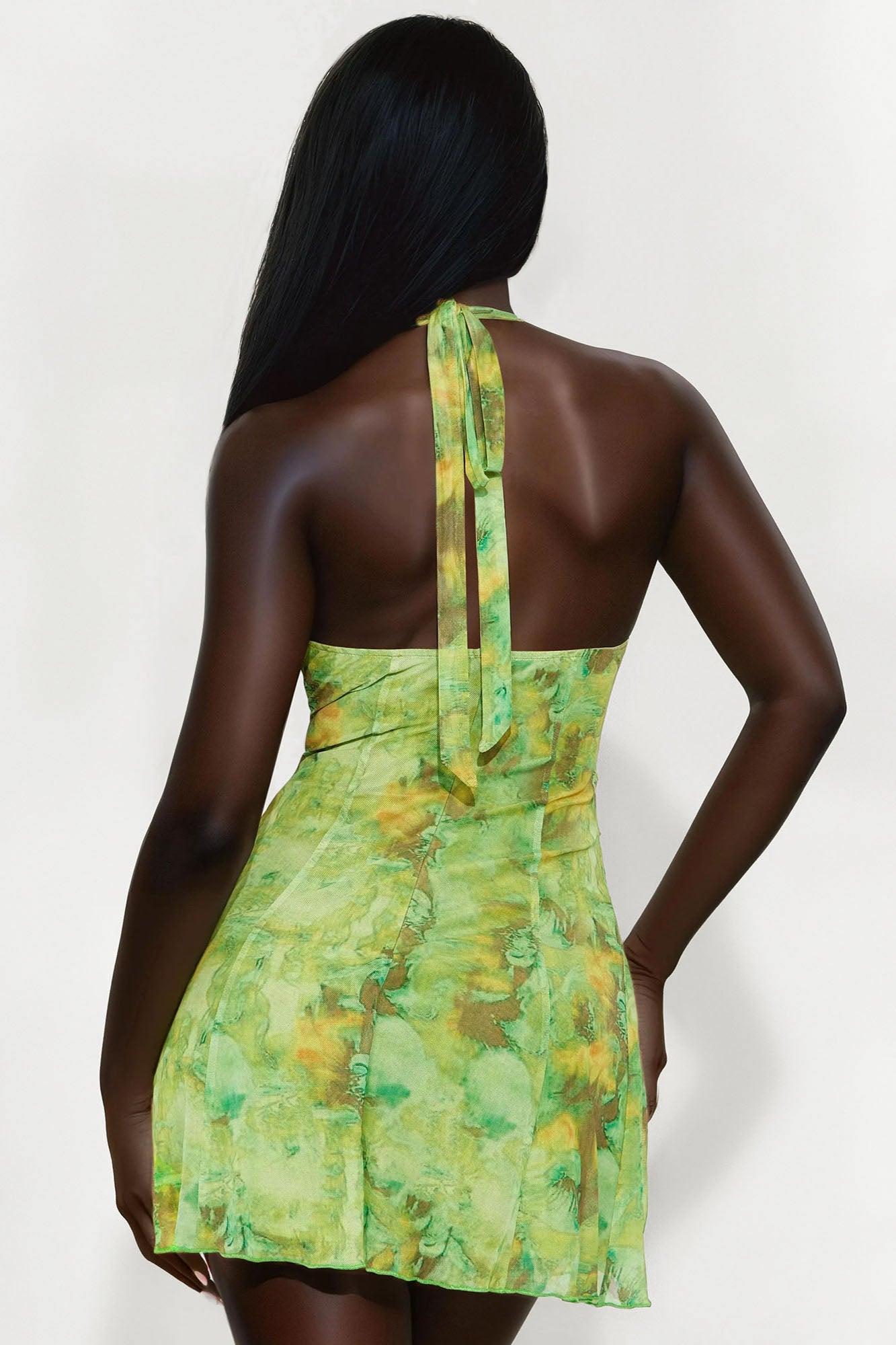 Tuscany Mesh Halter Mini Dress - Green/combo