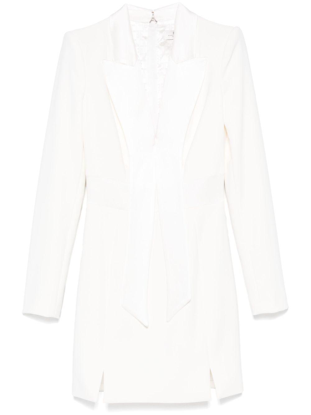 Elisabetta Franchi tuxedo mini dress | White | white | rear zip fastening | buttoned-cuff sleeves | short side slits | attached scarf | Polyester/Elastane | Cocktail & Party Dresses | Dresses | Clothing | Women