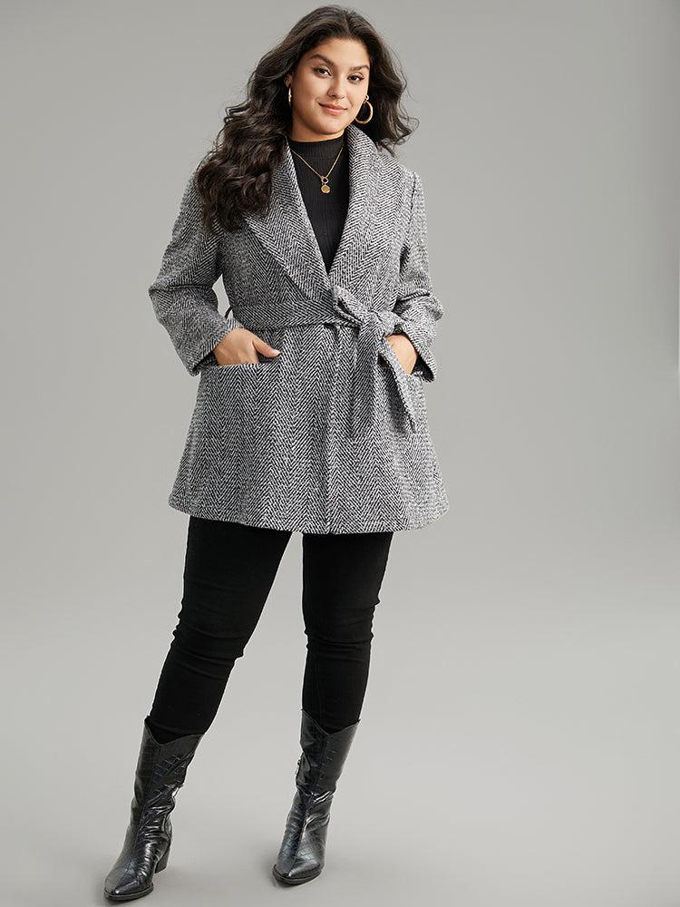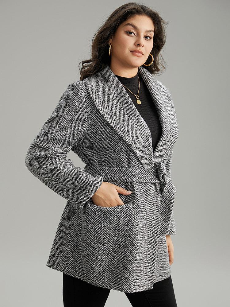 Shop Tweed Belted Lapel Collar Flap Pocket Coat now and redefine your style with confidence at BloomChic. Tailored for mid and plus-size women. This trendy Outerwear Women, sizes 10-30. Season:Winter;Color:Black;Style:Casual;Pattern Type:Plain;Details:Pocket, Button, Belted;Pocket:It is perfectly sized to carry a phone.;Belt:Belt;Closure Type:Button;Lining:No-lining