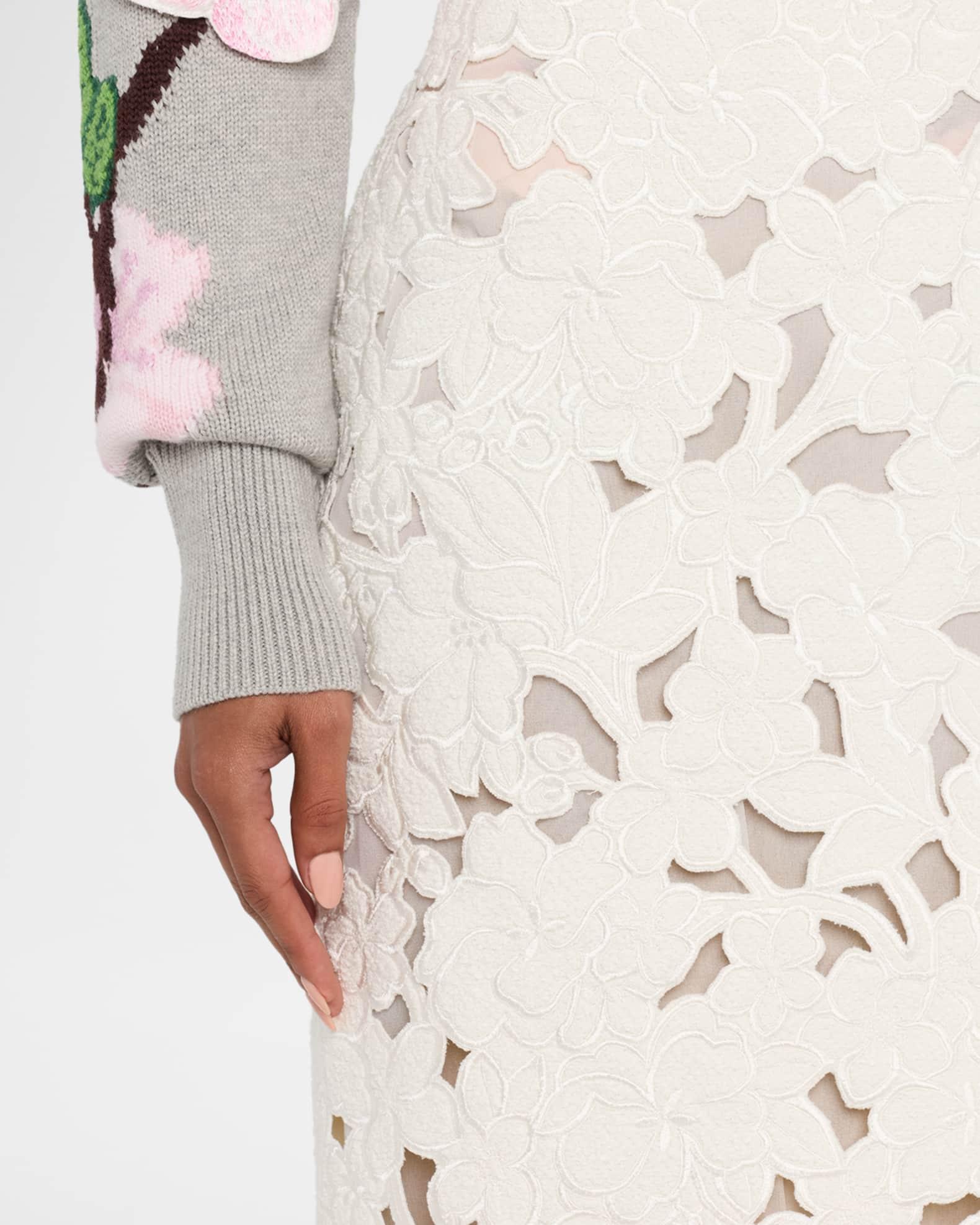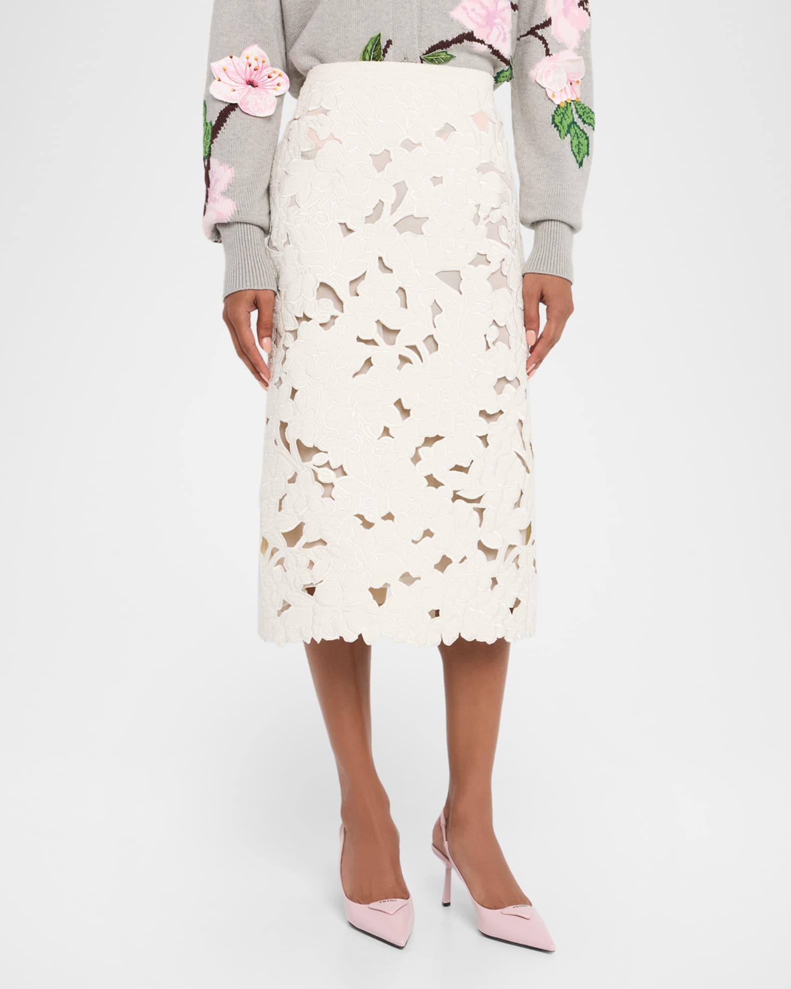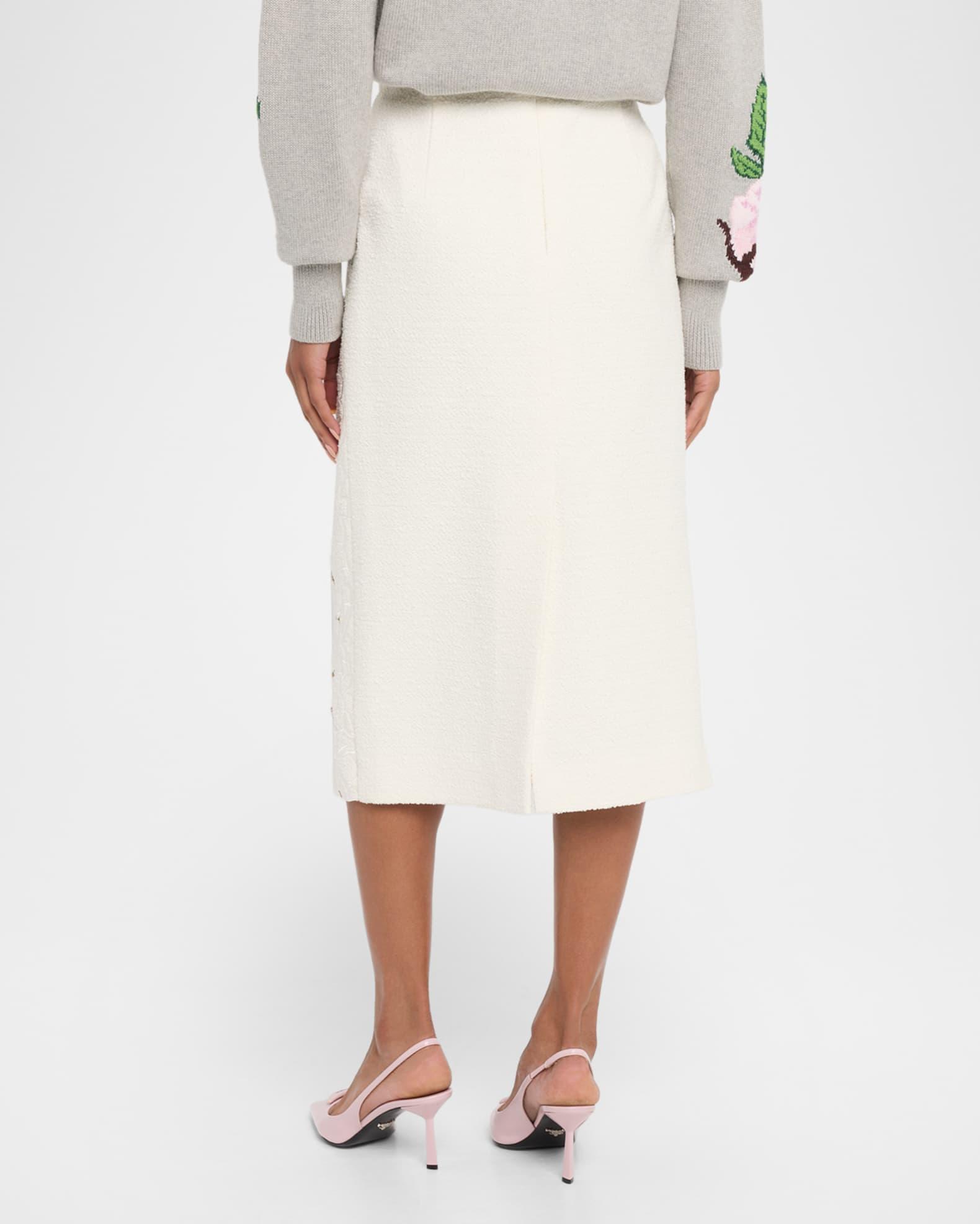 Tweed Embroidered Cutout Midi Suiting Skirt