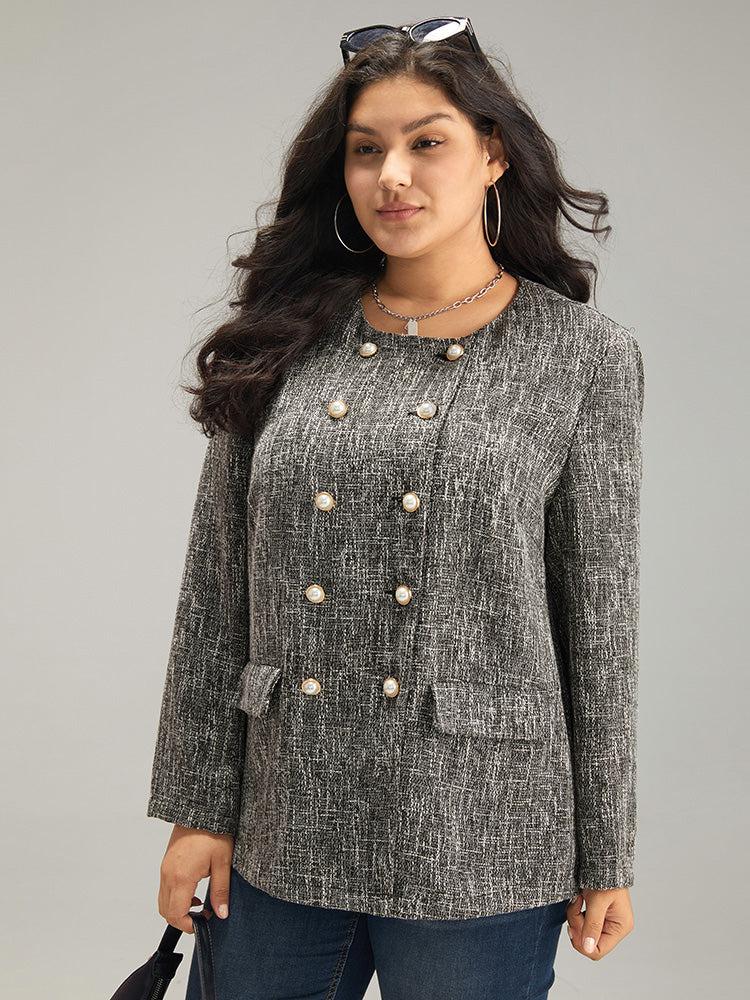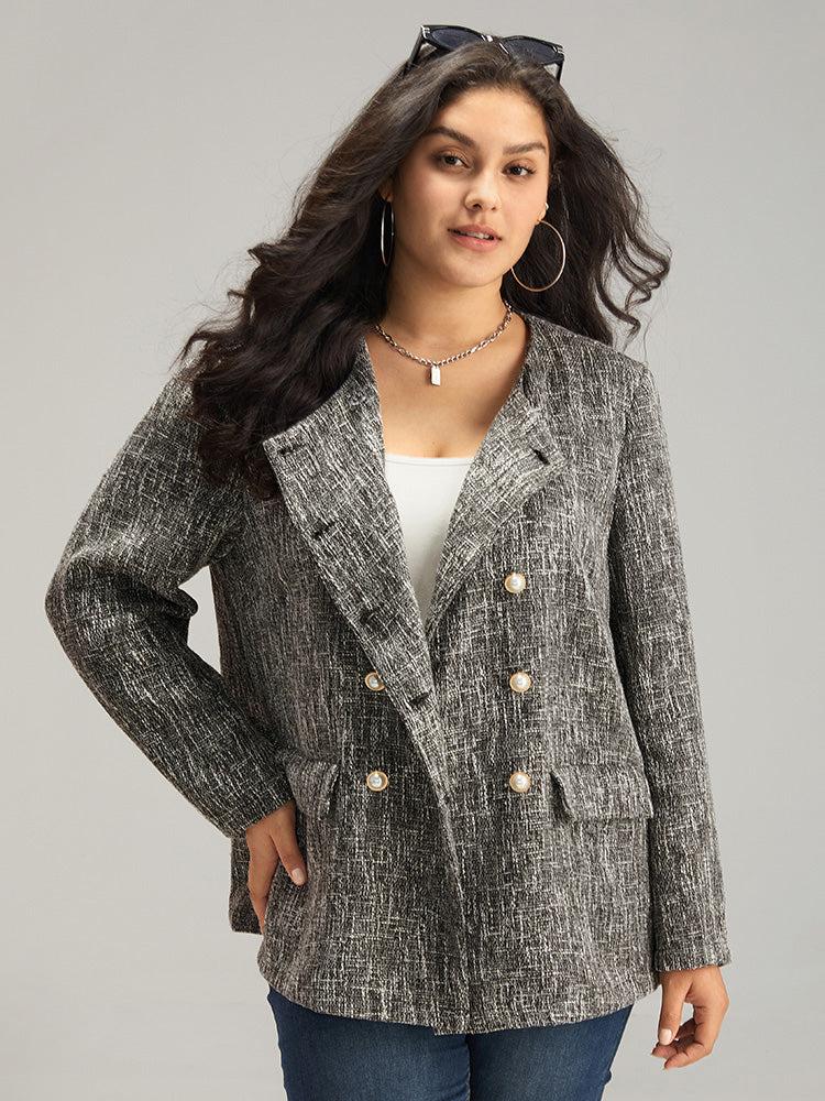 Shop Tweed Plisse Double Breasted Flap Pocket Coat now and redefine your style with confidence at BloomChic. Tailored for mid and plus-size women. This trendy Outerwear Women, sizes 10-30. Season:Fall;Color:Black;Style:Casual;Pattern Type:Plain;Details:Pocket, Button, Texture;Pocket:It is perfectly sized to carry a phone.;Belt:No-belt;Closure Type:Button;Lining:No-lining