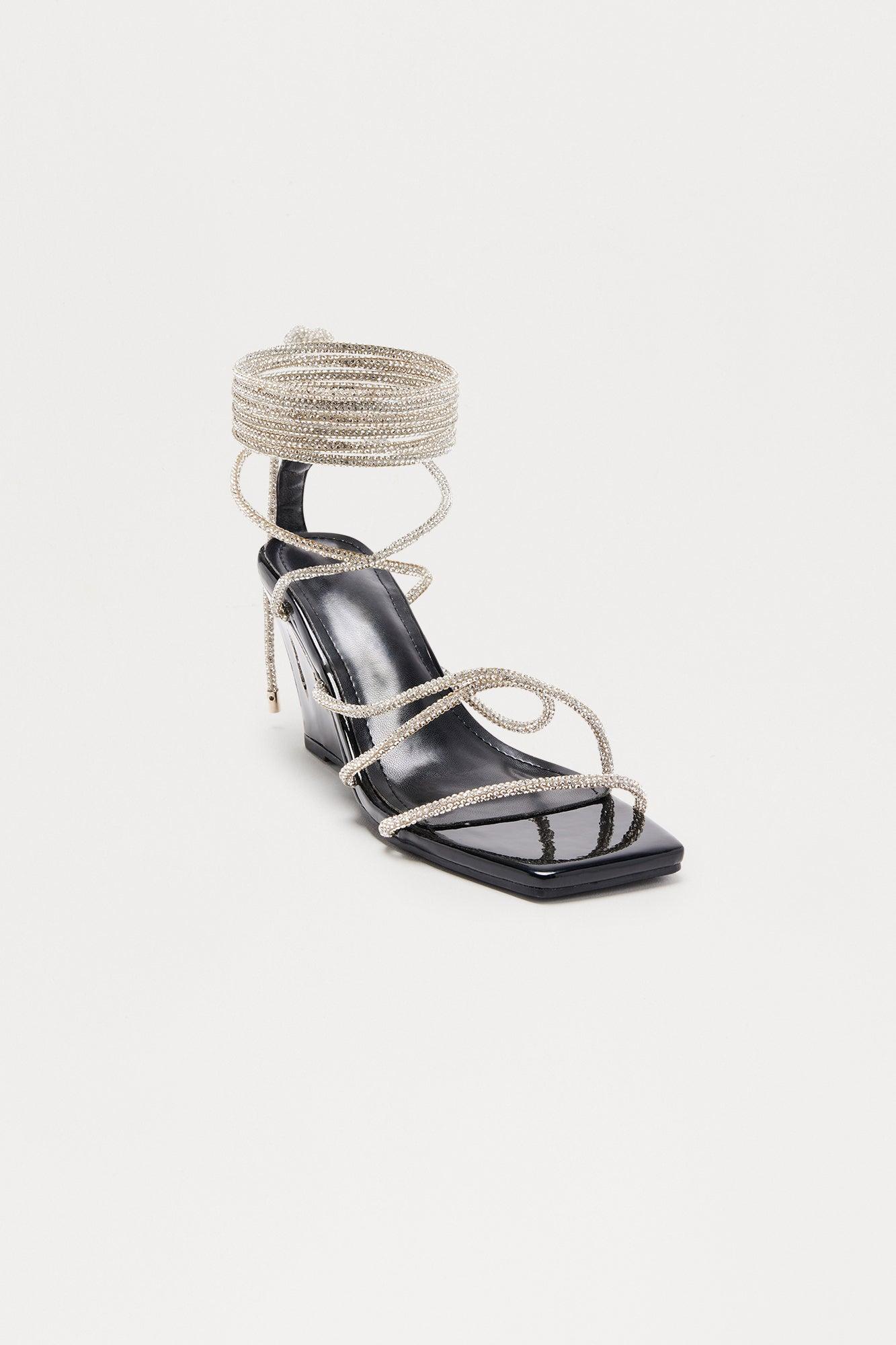 Twila Rhinestone Wrap Up Wedges - Black Female