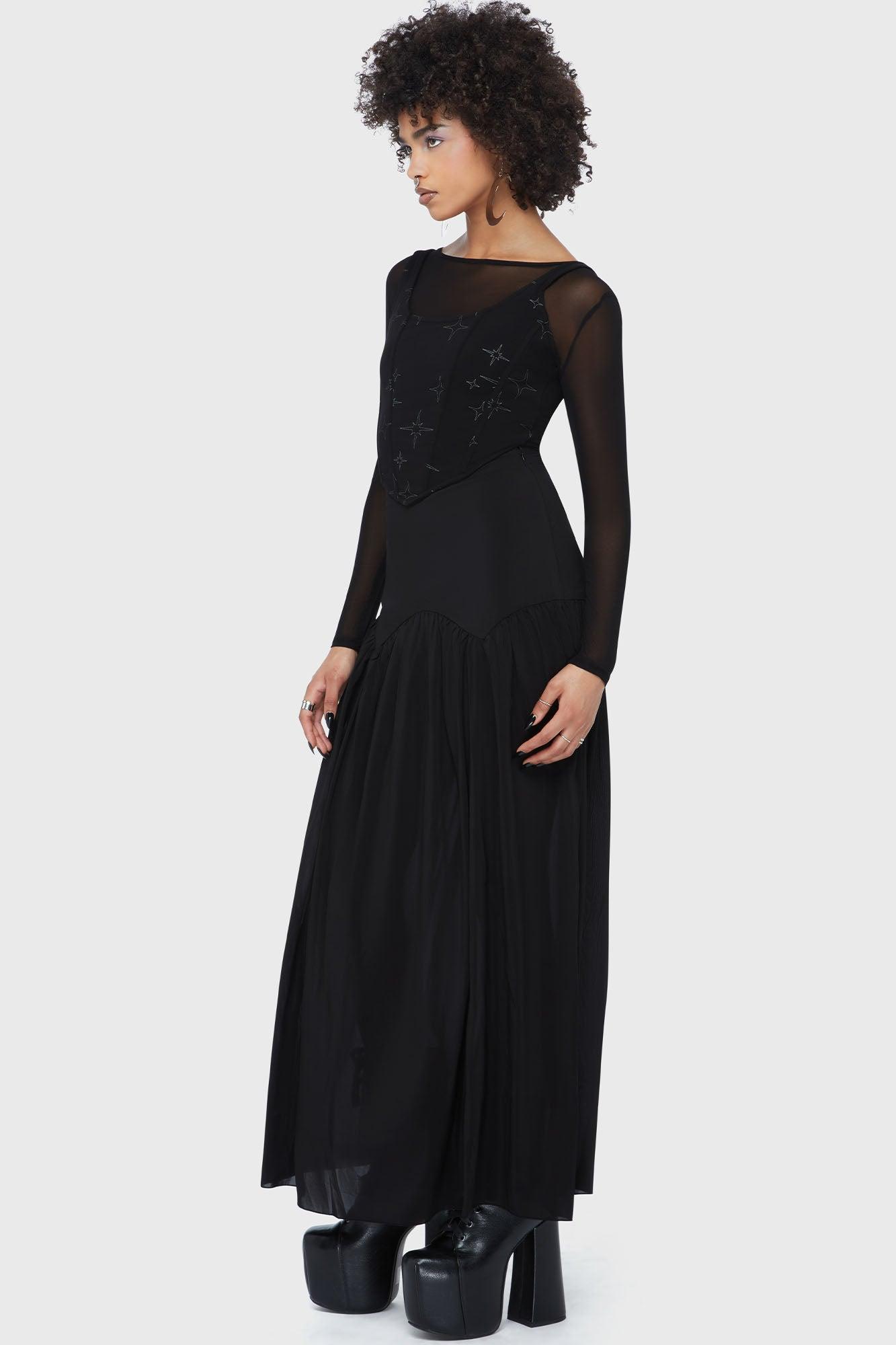 TWILIGHT THISTLE- Soft woven chiffon fabric.- Shaped hip seam with gathered skirt.- Fitted over the waist and hips.- Invisible side zip.- Designed in Brighton, England.Model is 5'8 and wears a size XS.With KILLSTAR branding. Shell fabric: 98% Polyester, 2% Elastane. Lining: 95% Polyester, 5% Elastane.Machine wash cold (30 °C) / Do not bleach / Do not tumble dry / Iron at low temperature / Do not dry clean. Imported.