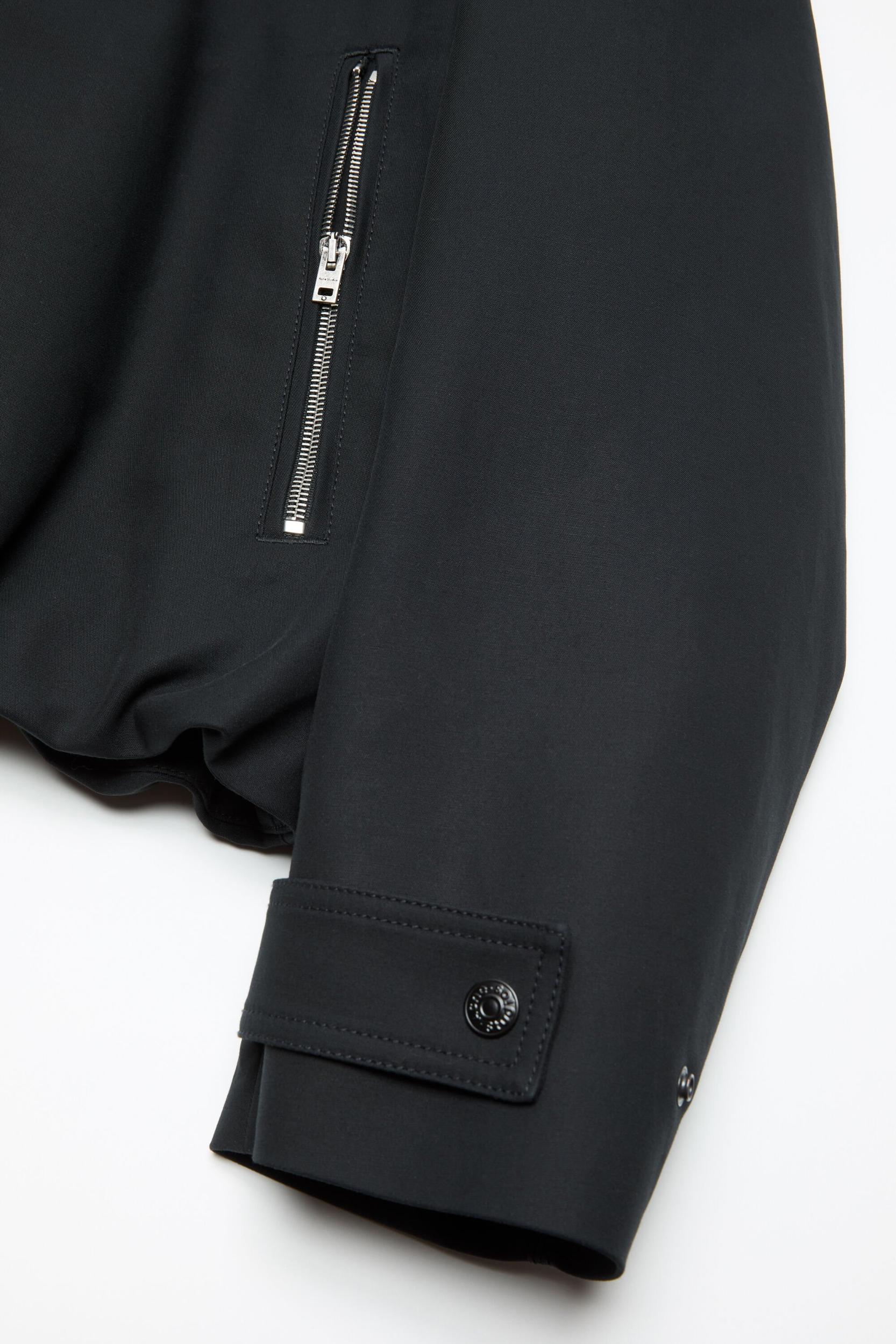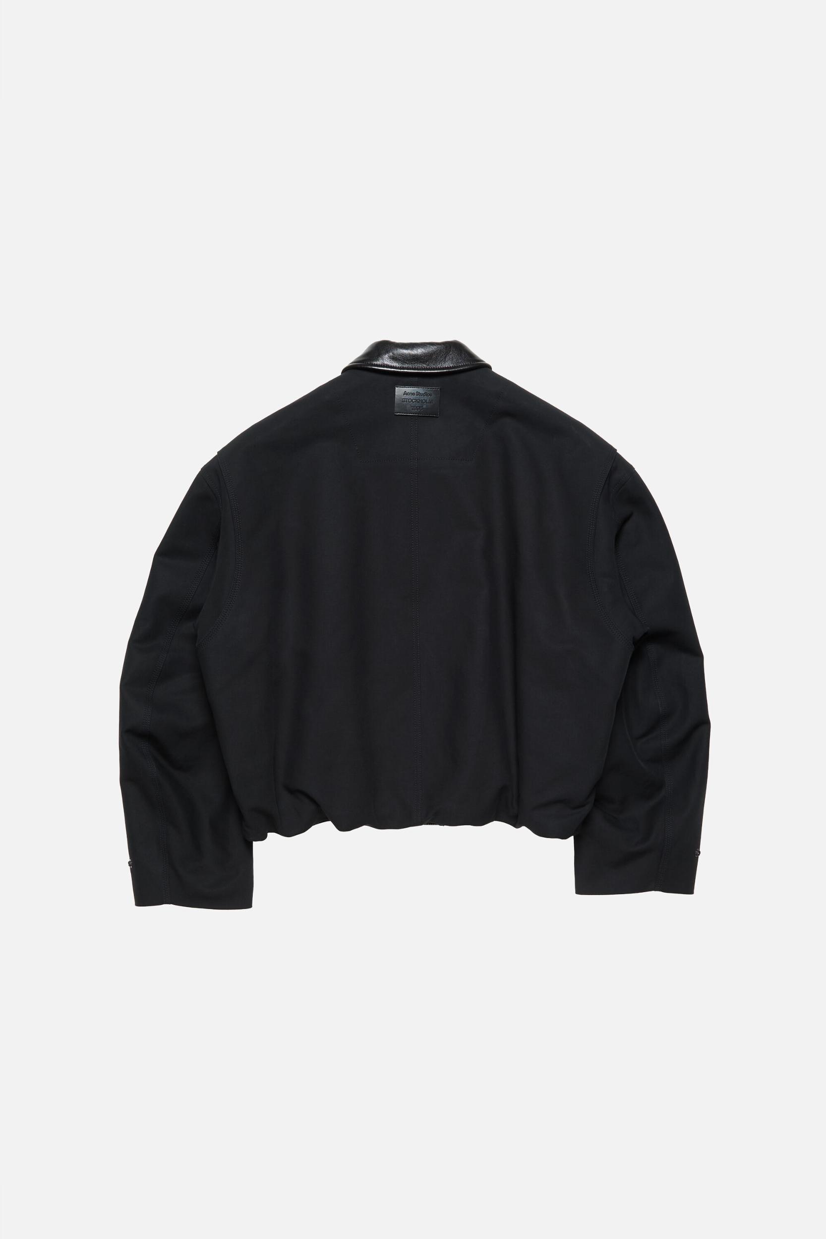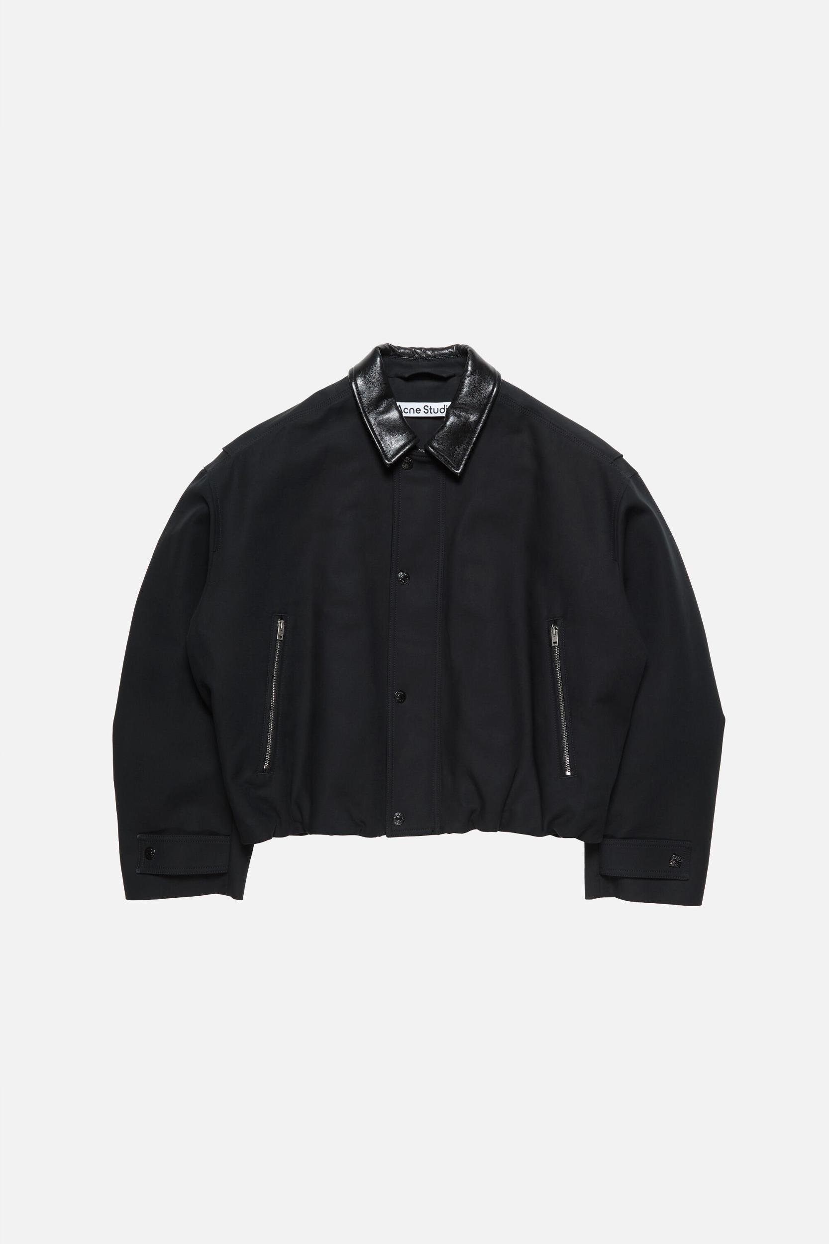 Bomber jacket crafted from smooth cotton satin with a double weave that creates a rounded, classic feel. Features a leather collar, snap button closure, zippered side pockets, tab snap cuffs, and an elasticated hem with drawcord for a gathered effect. Complete with a leather logo patch on the back neckline. Cut to a regular fit and below waist length. FN-MN-OUTW001243