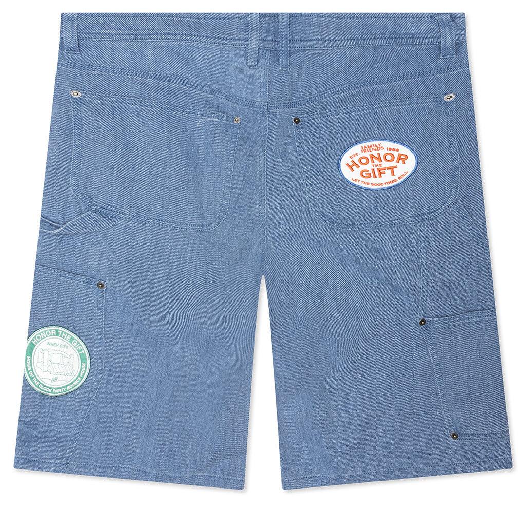Honor The Gift's Twill Carpenter Short reimagines classic workwear with a refined, street ready edge. Constructed from 100% premium cotton, it features a zip-fly with a shank button, 4-pocket design, and additional tool pockets and hammer loop. Custom patches are scattered throughout the shorts, while embroidered branding at the leg completes the look. 100% Cotton 10" inseam Zip-fly with shank button closure 4-pocket design Tool pockets and hammer loop Embroidered graphics Woven patches Style No: HTG250224-BLU HTG250224 BLUE