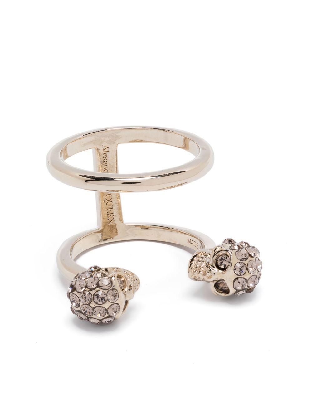 Alexander McQueen Twin Skull Double ring | Gold | glass/RDS Product Name: BLACK ORCHID EDP Division: TF (TOM FORD BEAUTY) ALCOHOL DENAT./Brass | Rings | Jewelry | Women