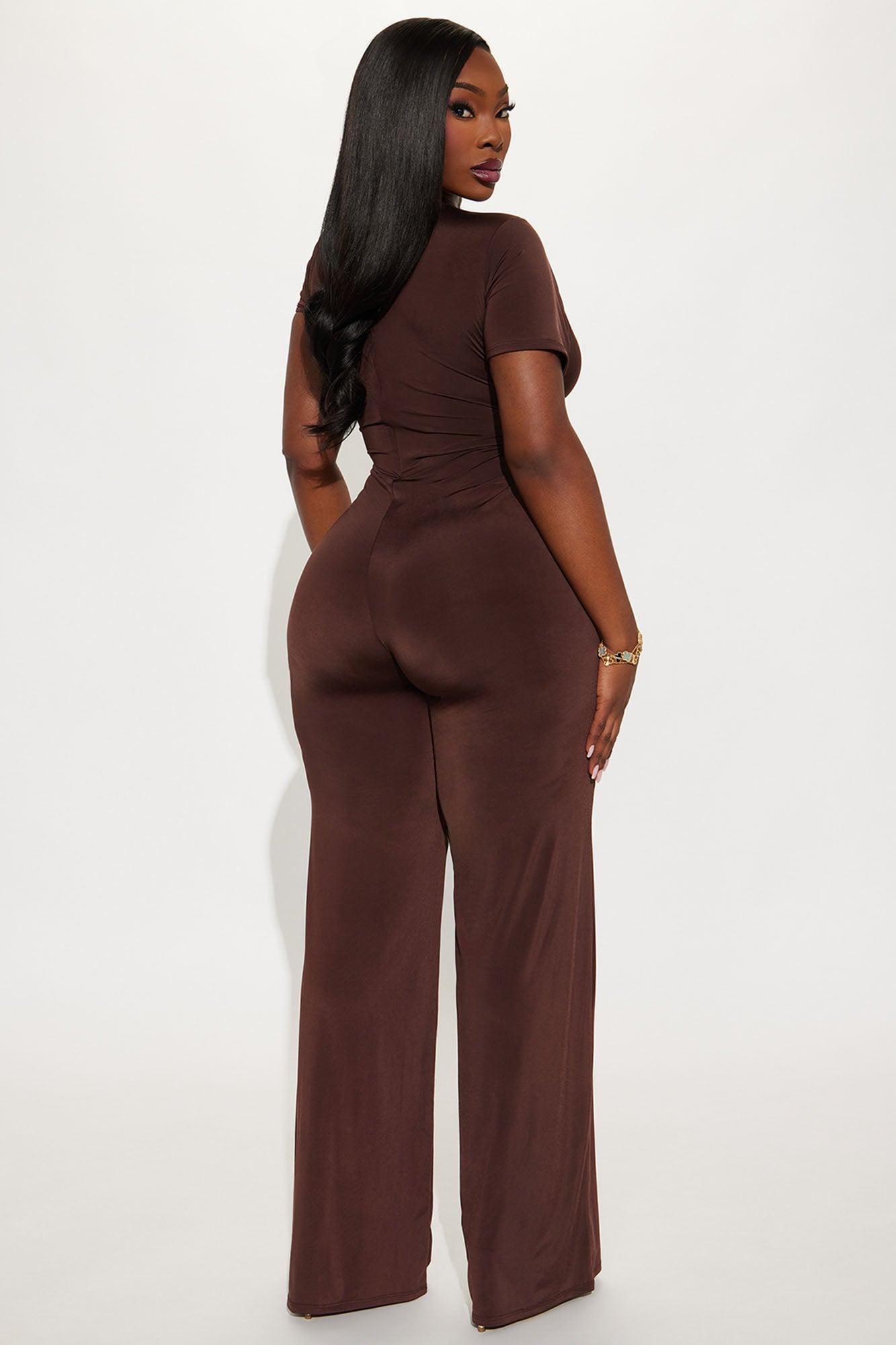 Twist It Up Cut Out Jumpsuit - Brown