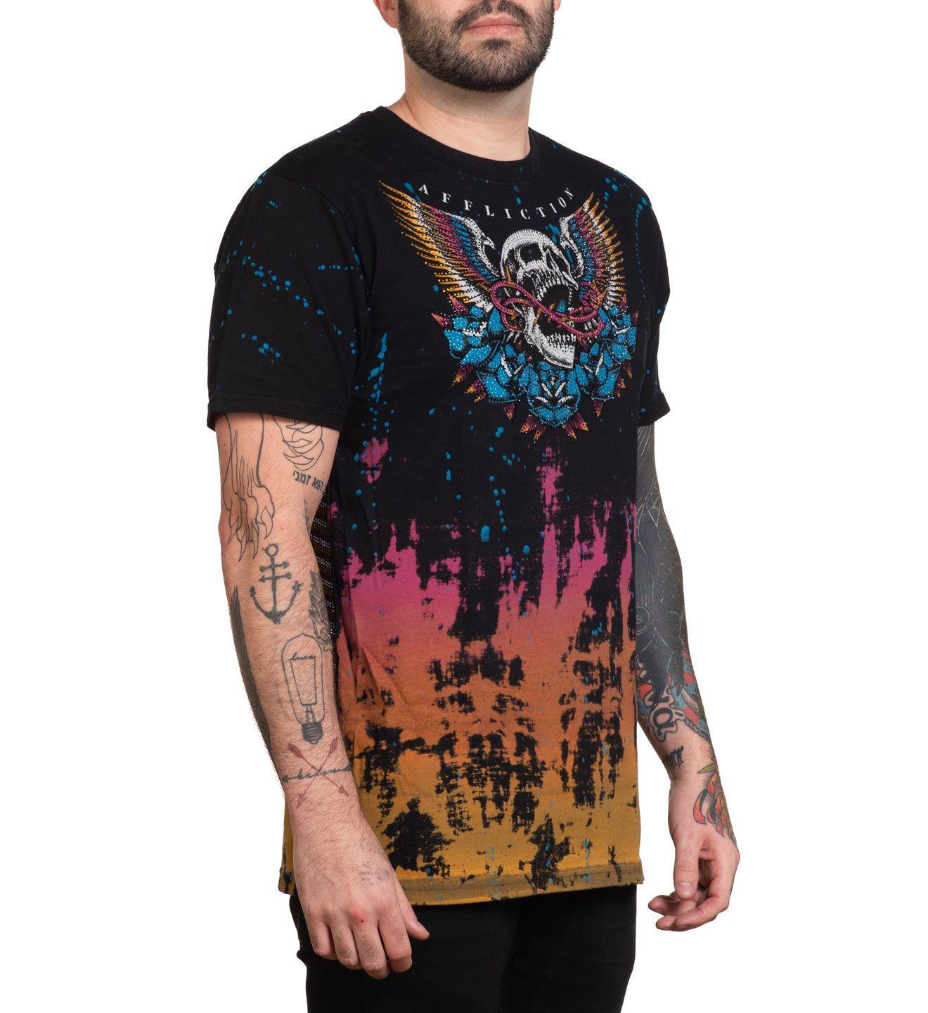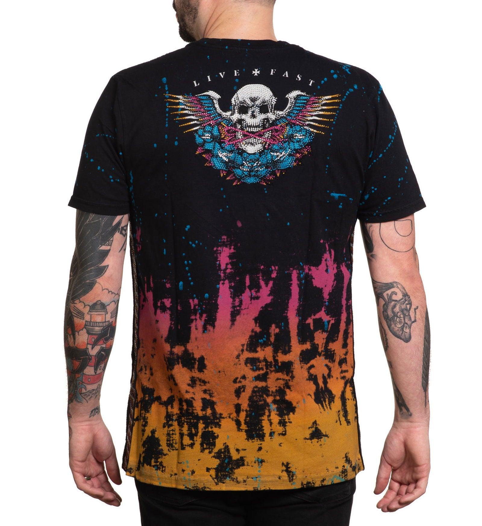 Twisted Grin Short Sleeve Tee 100% Cotton Black Reactive Rhinestones Over Front/Back Art