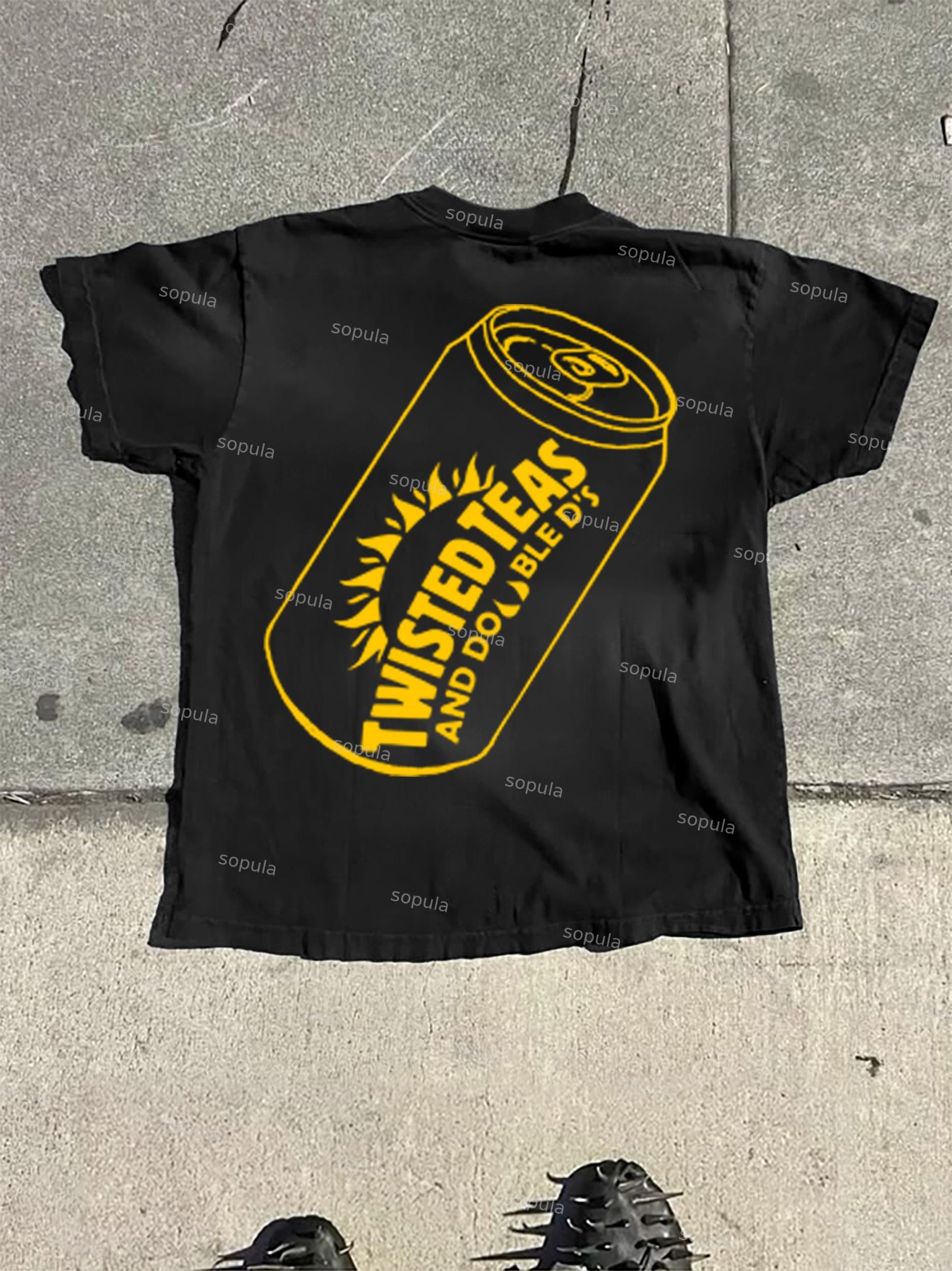 Twisted Teas And Double D's Graphic Cotton T-shirt. SPU: CP-214378-WCX Fabric Name: 100% Cotton Pattern: Twisted Teas And Double D's Process: Printed Style: Vintage Length: Regular Collar: Round Neck Popular Elements: Print Sleeve Type: Short Sleeve Occasion: Street, Daily Theme: Summer Size Shoulder Bust Length Sleeve Height(Reco) Weight(Reco) cm inch cm inch cm inch cm inch in cm lb kg S 45 17.6 98 38.2 68 26.5 20 7.8 5'5"-5'7" 165-170 132-154 60-70 M 48 18.7 104 40.6 71 27.7 20 7.8 5'7"-5'9" 170-175 154-176 70-80 L 51 19.9 110 42.9 73 28.5 20 7.8 5'9"-5'11" 175-180 176-198 80-90 XL 54 21.1 116 45.2 75 29.3 21 8.2 5'11"-6'1" 180-185 198-220 90-100 2XL 58 22.6 124 48.4 78 30.4 21 8.2 6'1"-6'3" 185-190 220-242 100-110 3XL 61 23.8 130 50.7 81 31.6 22 8.6 6'3"-6'5" 190-195 242-264 110-120 Due to manual measurement, there may be an error of 1-3cm