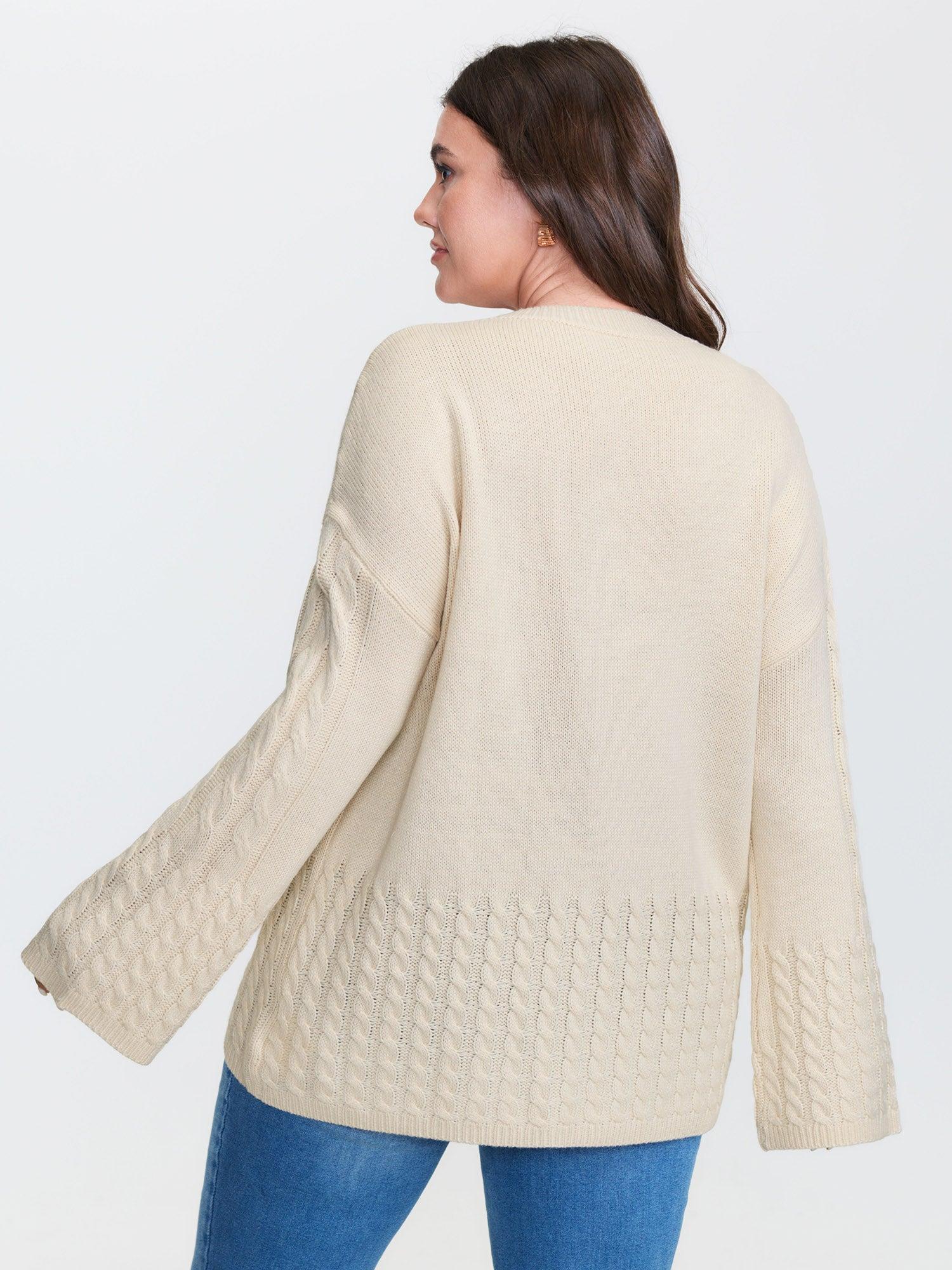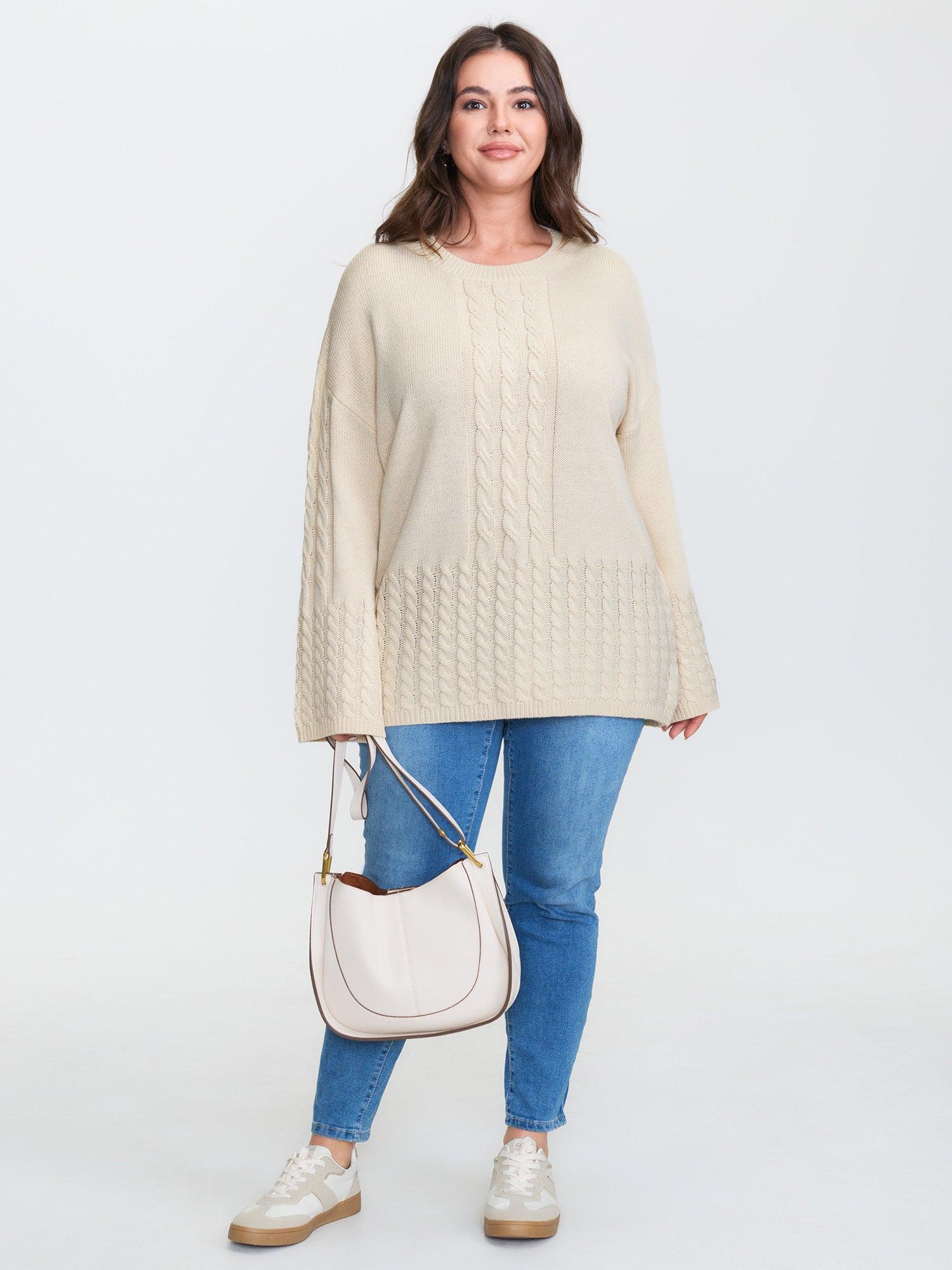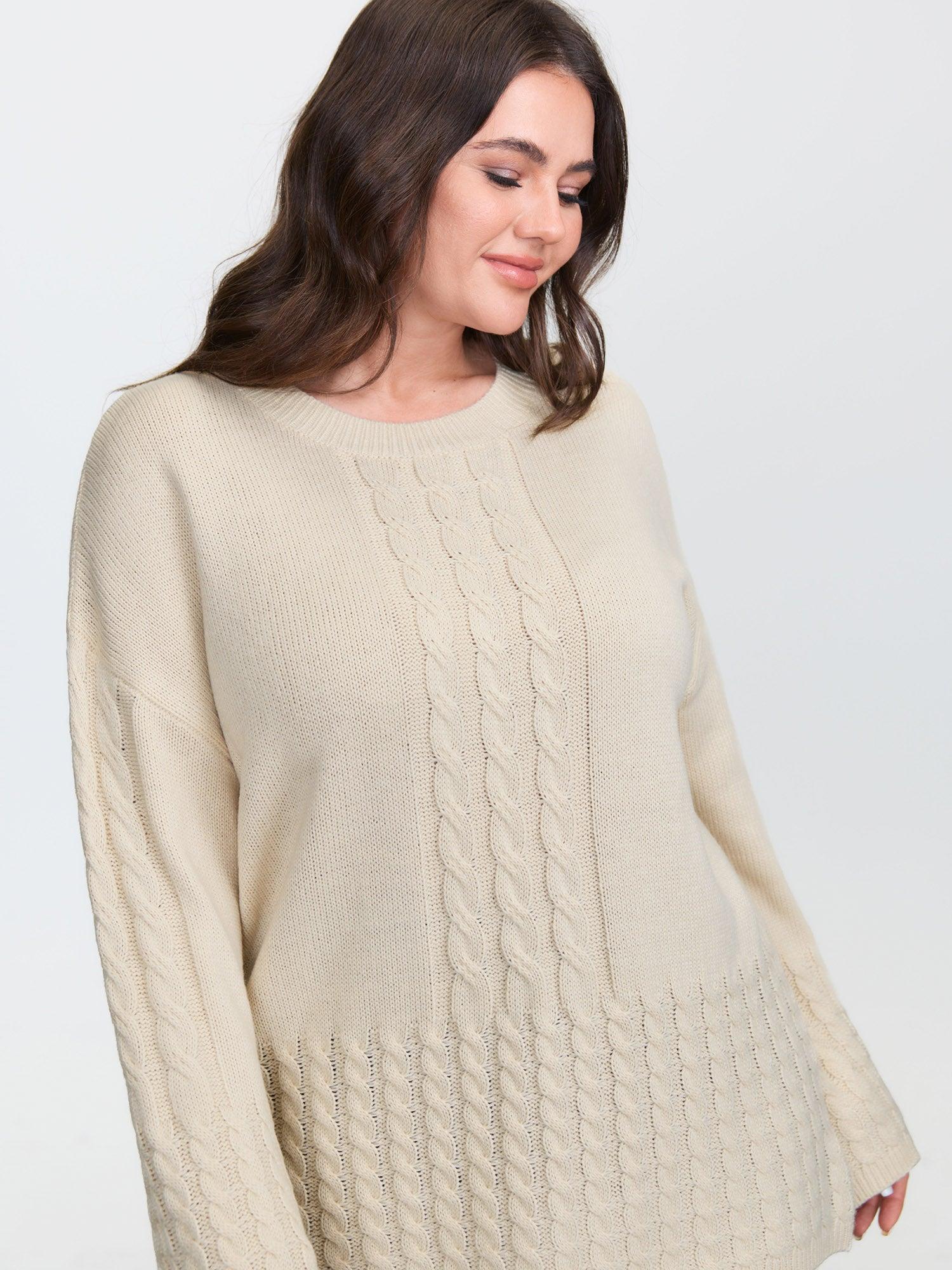 Shop Twisted Texture Drop Shoulder Pullover now and redefine your style with confidence at BloomChic. Tailored for mid and plus-size women. This trendy Sweaters Cardigans Women, sizes 10-30. Color:Ivory;Style:Leisure;Neckline:Round Neck;Sleeve Type:Drop shoulder sleeve;Prints:Non;Details:Texture, Cable Knit;Pocket:No-pocket;Belt:No-belt;Closure Type:Non