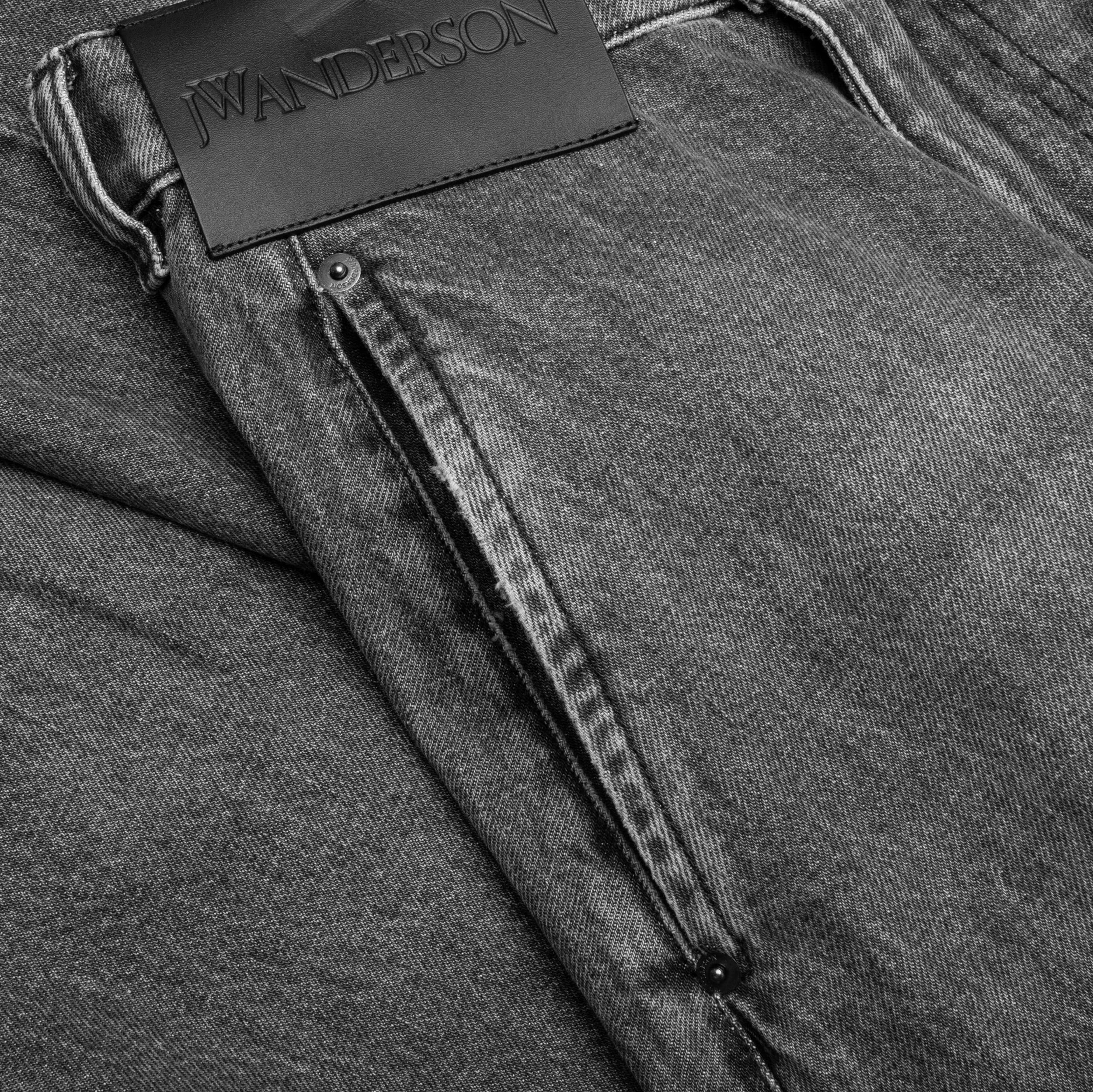 Made from cotton, the JW Anderson Twisted Workwear Jeans are a must-have silhouette in any collection. The unique twisted silhouette adds an interesting touch to the shape. The garment has a vintage wash and features slanted pockets, twisted seams, and a low waist. An embossed leather patch at the back waistband wraps up the remainder of the silhouette. 100% Cotton Twisted seams Low waist Zip fly closure Carpenter loop Oversized Embossed leather patch Style No: DT0068PG1195929