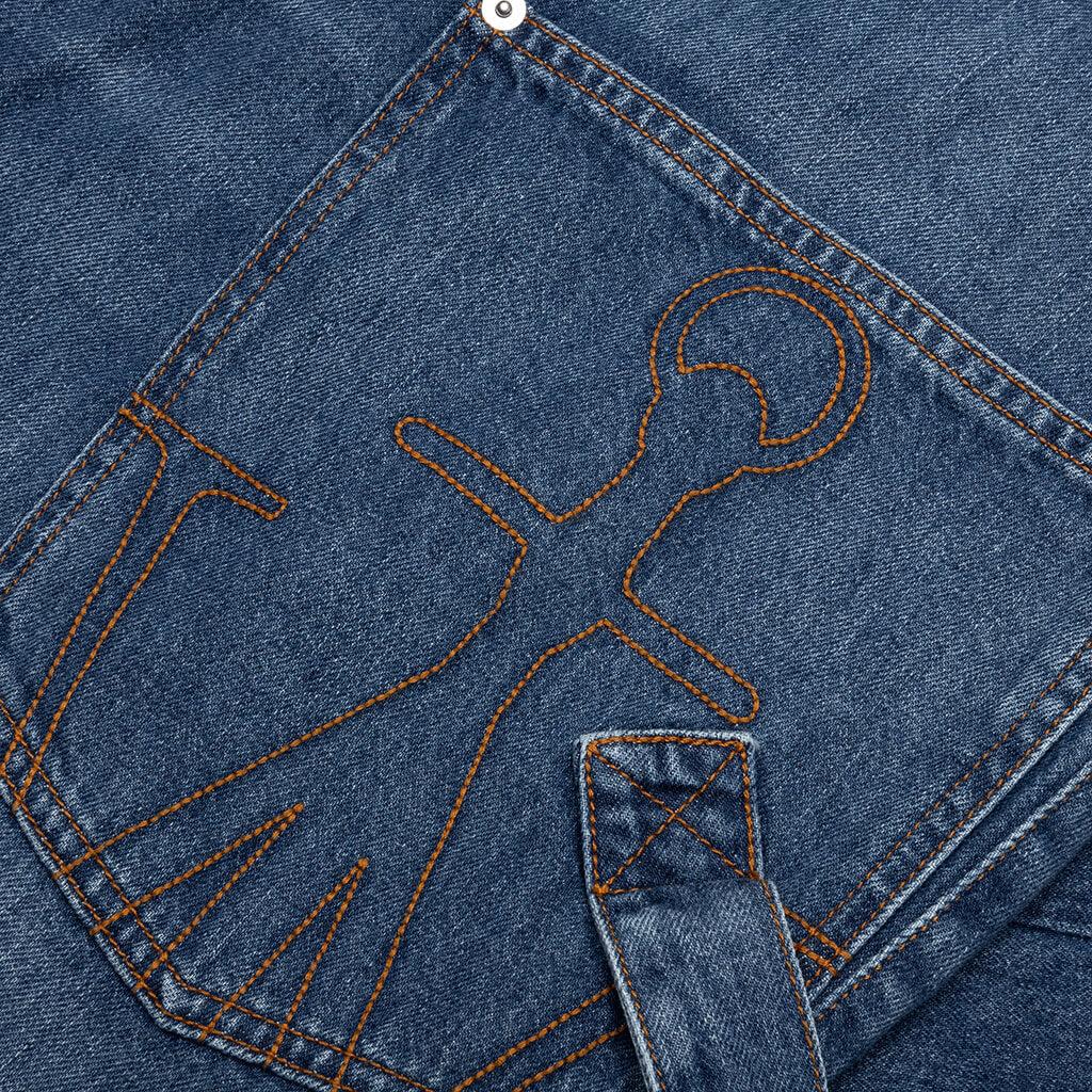 These JW Anderson Twisted Workwear Jeans in light blue feature a relaxed fit with an asymmetric and paneled construction. Designed with belt loops and a leather logo patch at the waistband, these jeans offer a unique twist on classic denim. The three-pocket styling completes the look. 100% Cotton relaxed-fit Asymmetric and paneled construction Belt loops Leather logo patch at waistband Three-pocket styling Style no: DT0052-PG1164-804