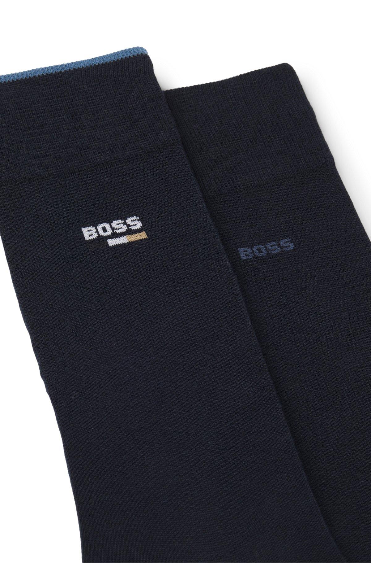 With tipping and logo details, these BOSS Menswear socks have an everyday regular length. Cotton-rich yarn with stretch for lasting shape retention.