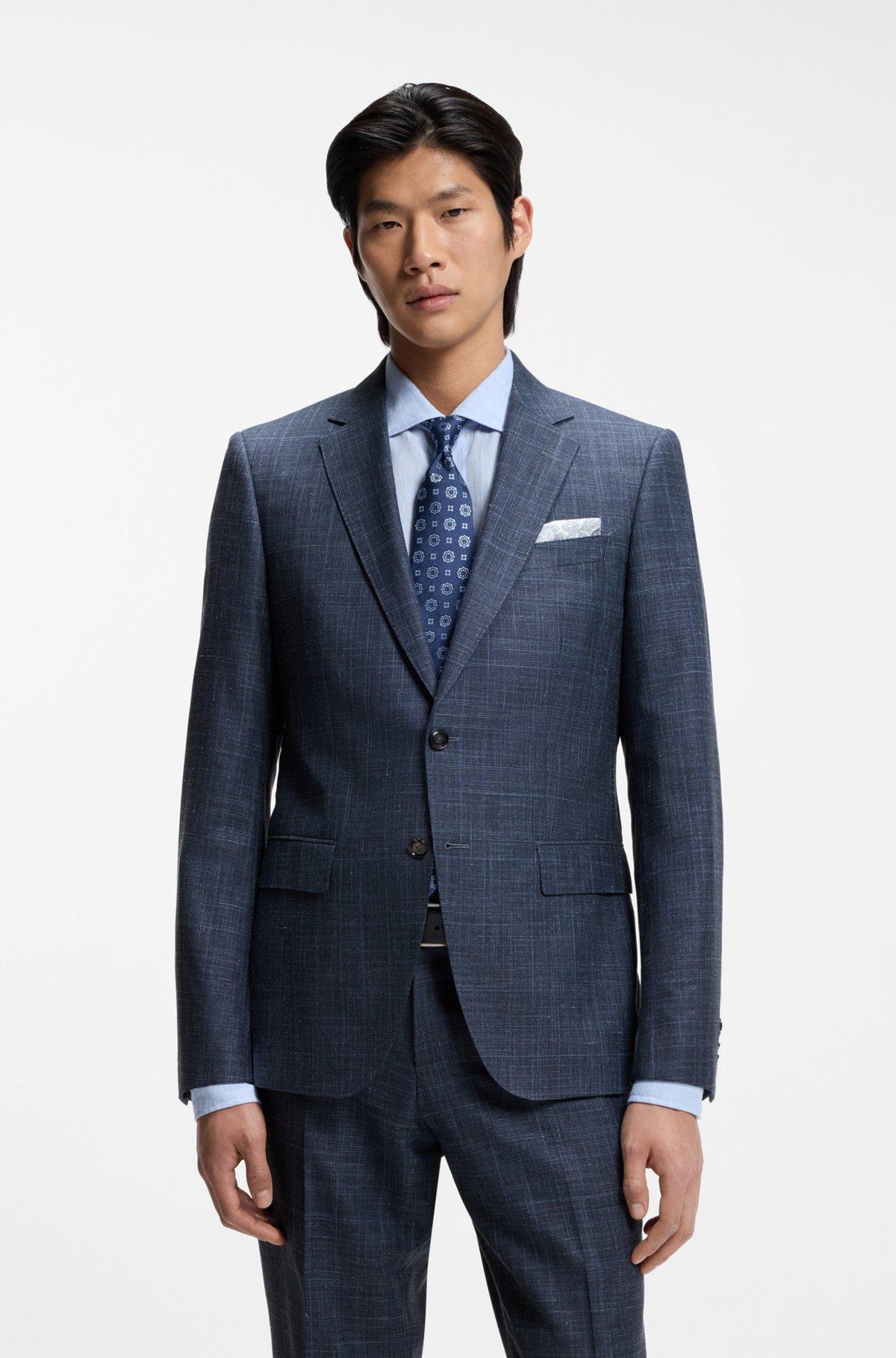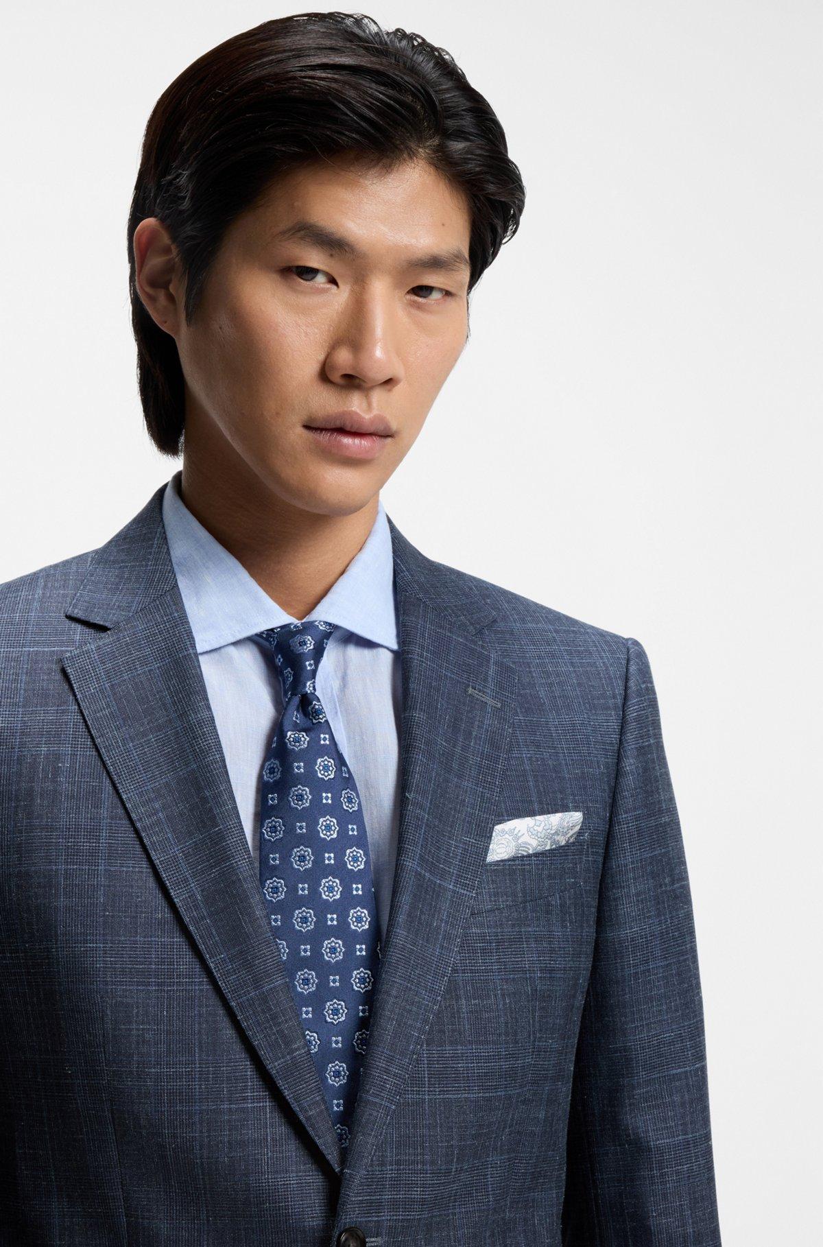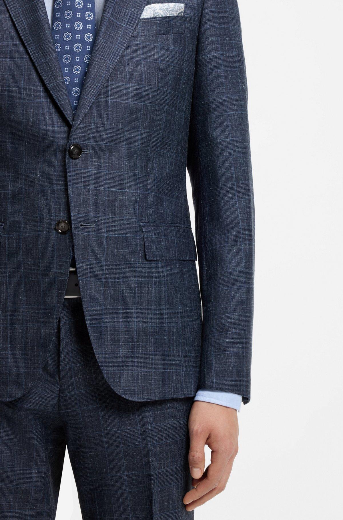 Offering natural stretch and breathability, this BOSS Menswear suit is a great investment. Cut to a slim fit with a Glen check, this two-piece is crafted in fabric made from virgin wool, silk and linen. Notch lapels, flap pockets and kissing buttons at the cuffs add elegance to the blazer.