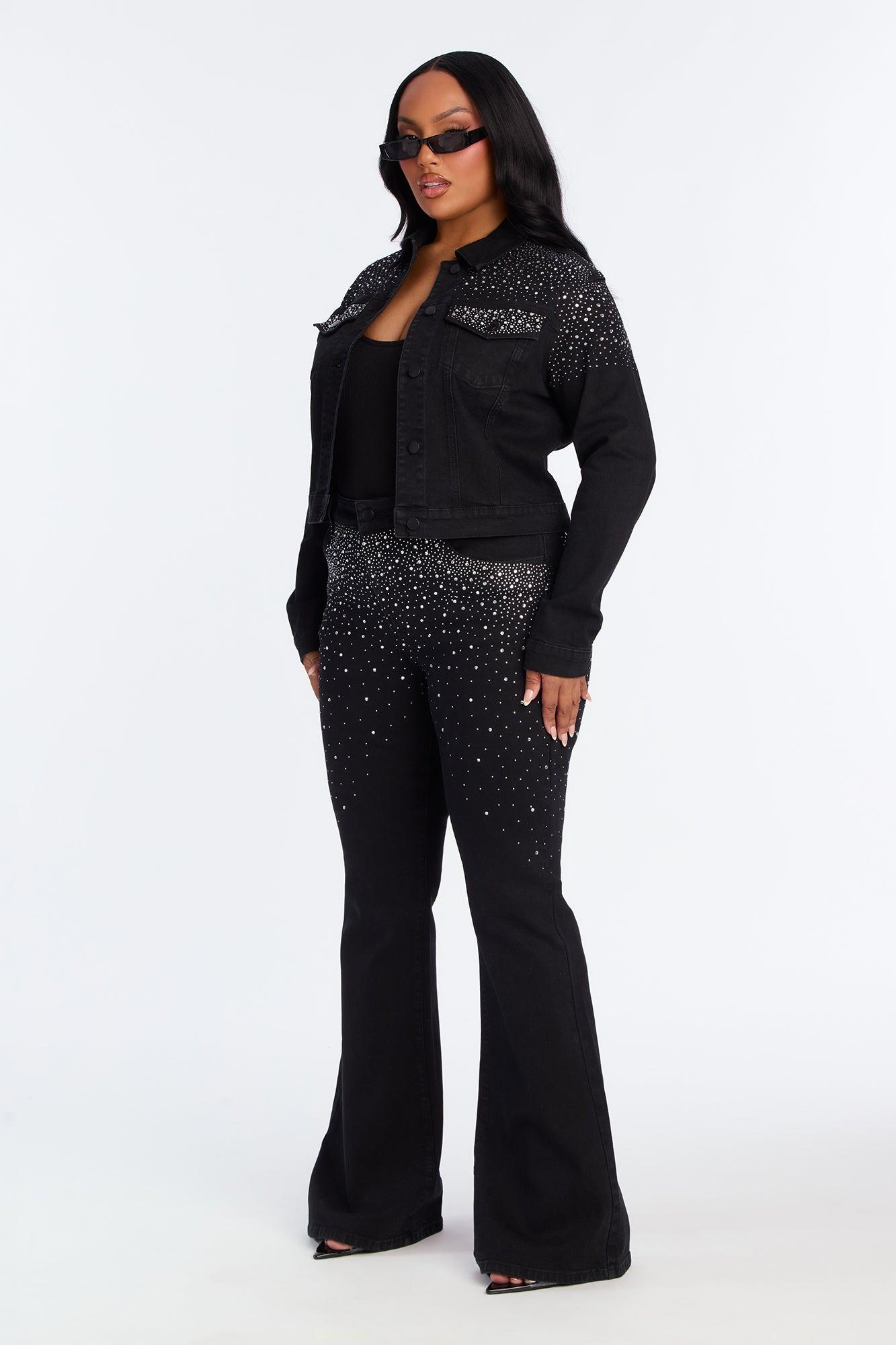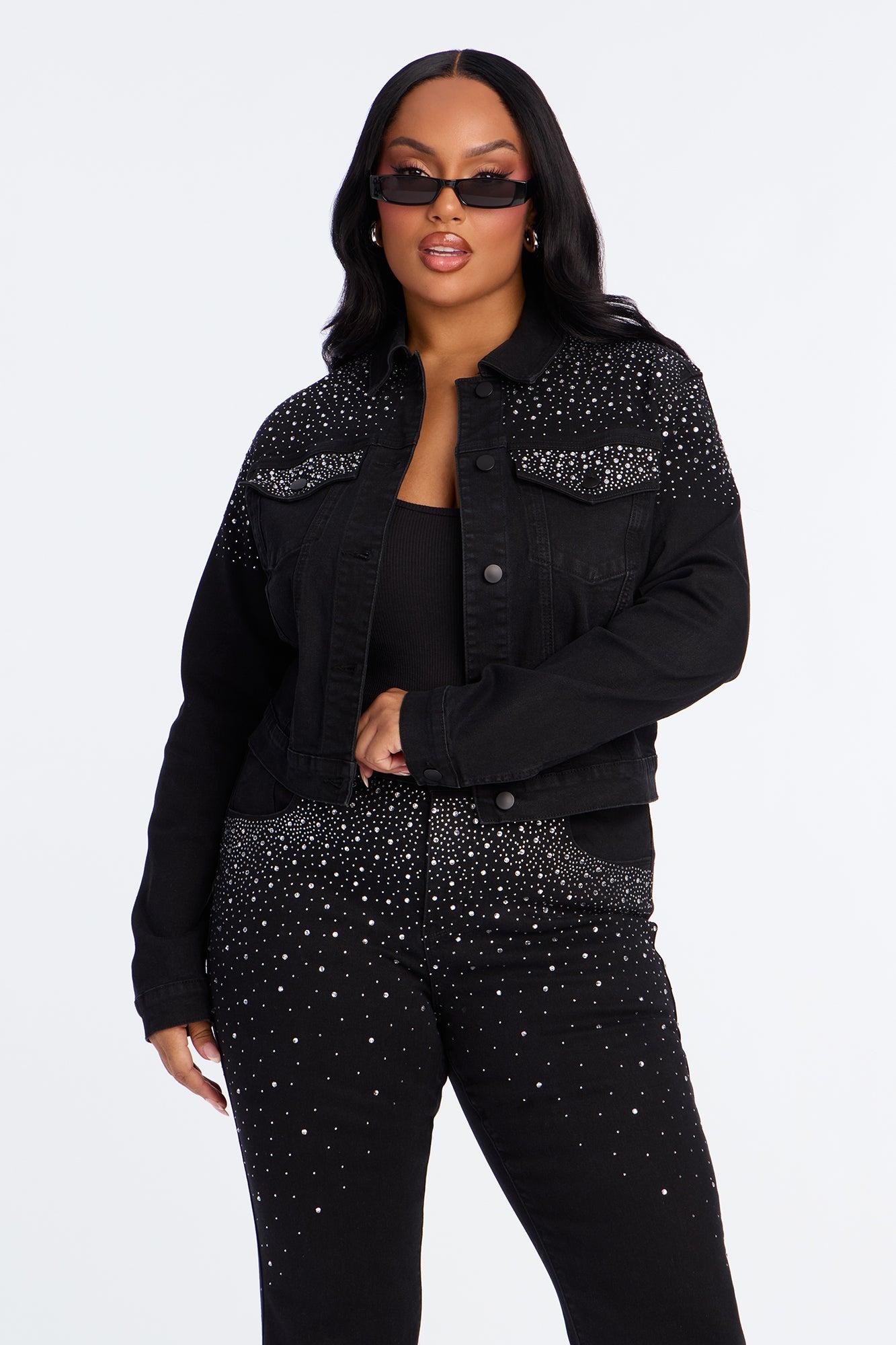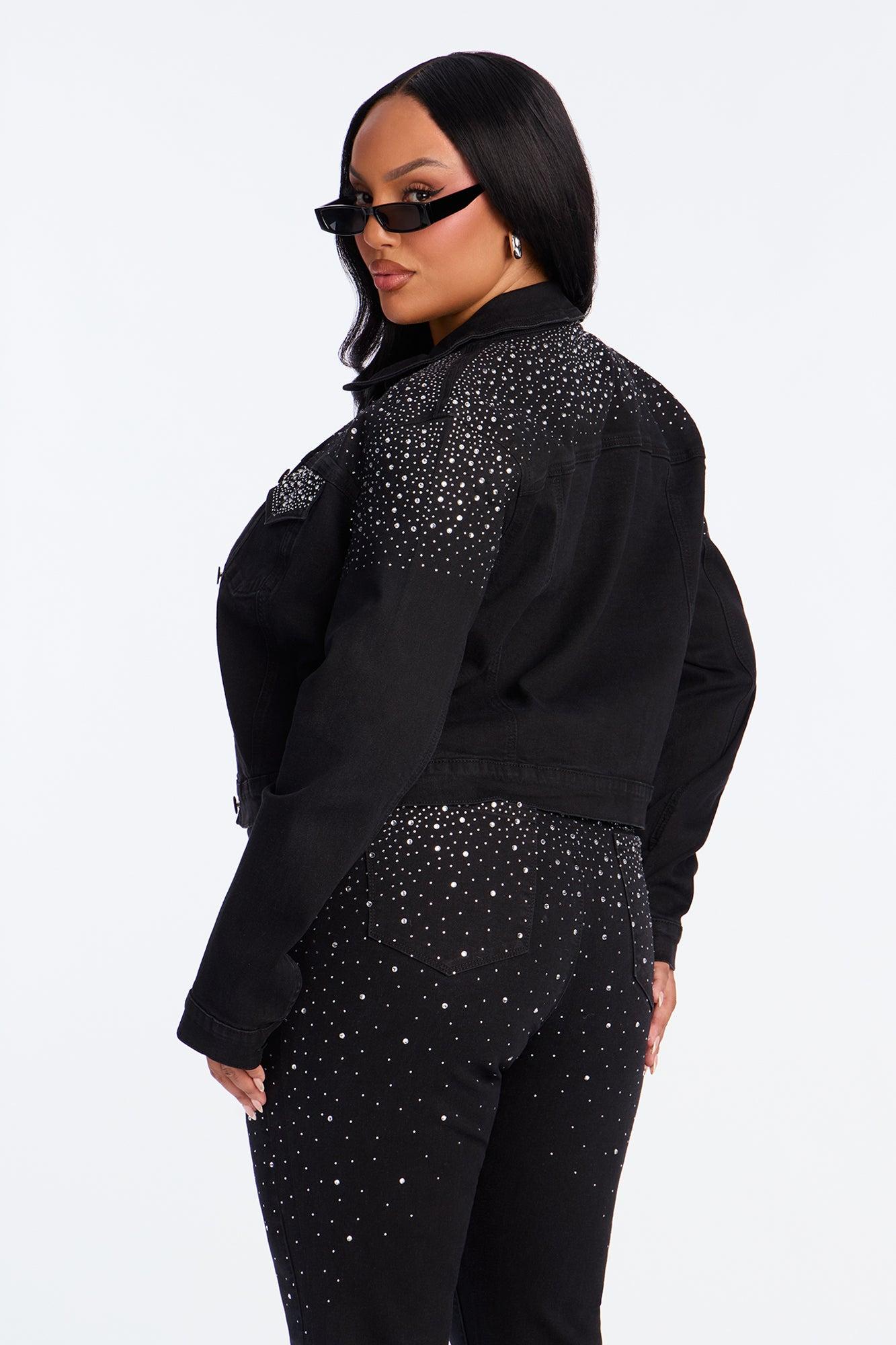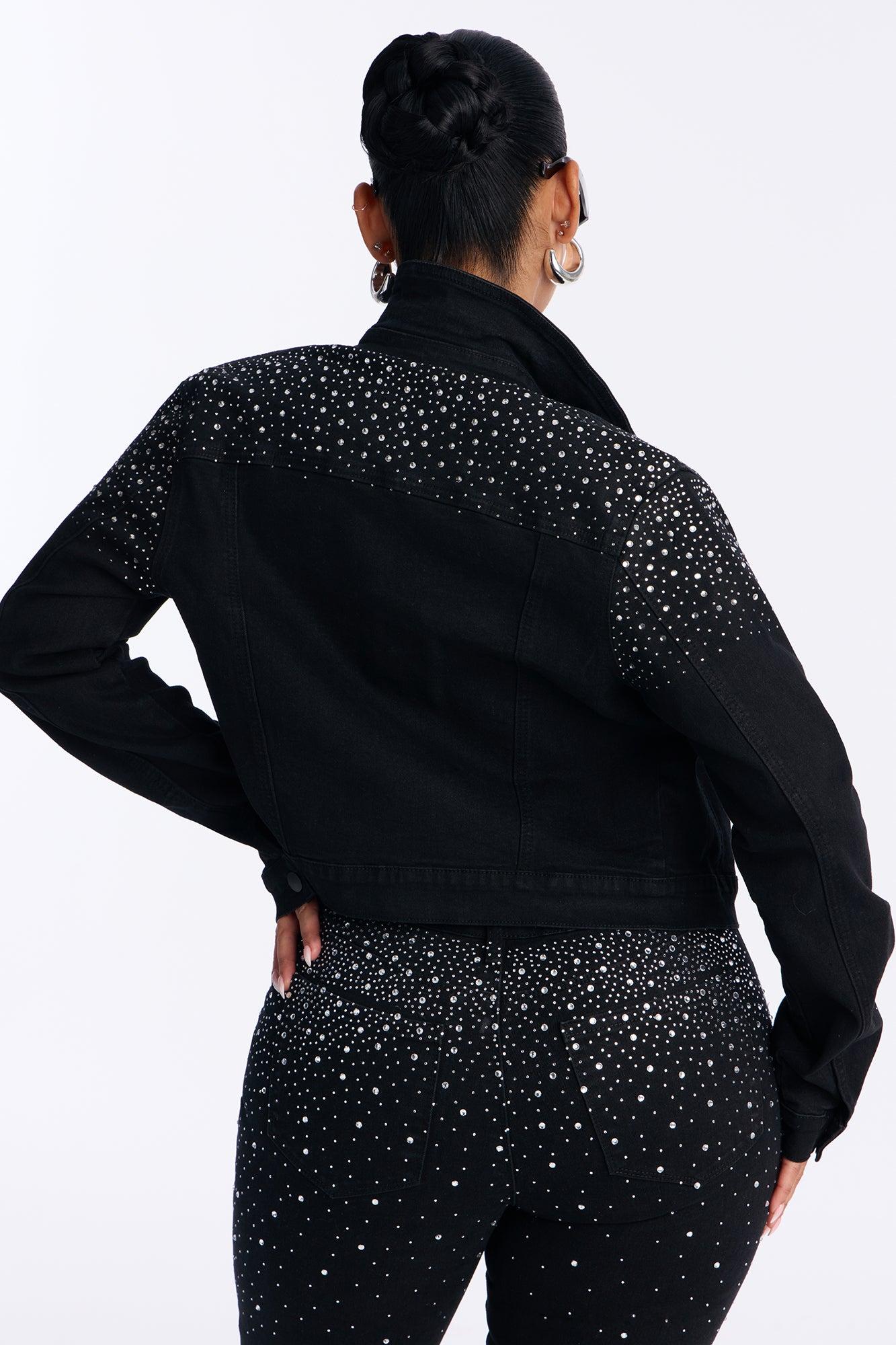 Available In Black Wash. Pair With Two-Step Embellished Flare Jeans Denim Jacket Collar Button Closure Embellished Denim Stretch Disclaimer: Due To The Rhinestones Process, Each Garment Is Unique Disclaimer: Due To The Specialized Wash & Distressing Process, Each Garment Is Unique 54% Cotton 26% Polyester 18% Rayon 2% Spandex Imported California Proposition 65WARNING: Cancer and Reproductive Harm - www.P65Warnings.ca.gov.