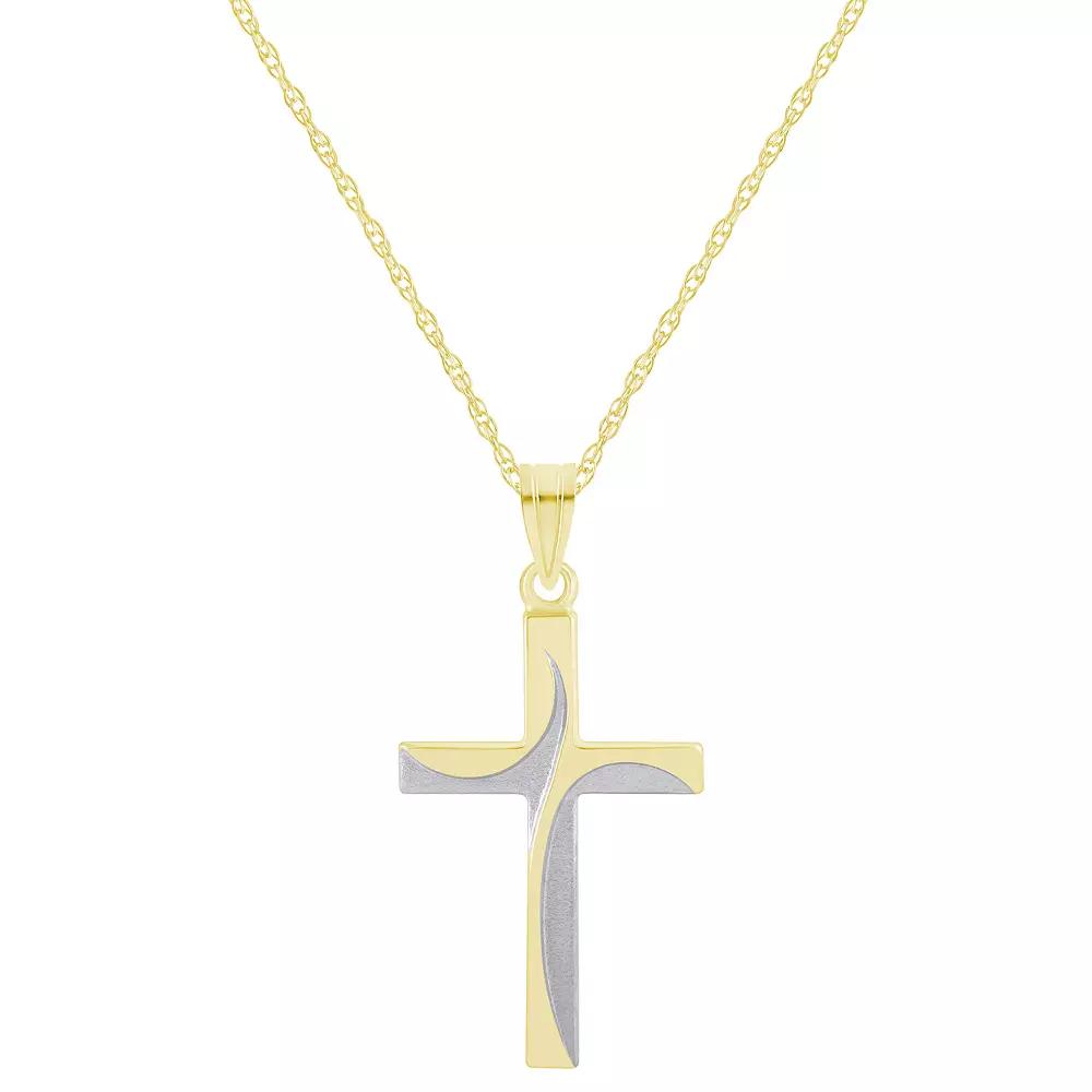 Display your faith with this lovely 14k two tone gold cross pendant necklace. Click on this JEWELRY & WATCHES GUIDE to learn about fit, styles, materials and more! Display your faith with this lovely 14k two tone gold cross pendant necklace. Click on this JEWELRY & WATCHES GUIDE to learn about fit, styles, materials and more! FEATURES Pendant dimensions: 0.5 in. x 0.875 in. Chain length: 16 in. + 2-in. extender Chain type: rope Clasp: spring-ring Metal: 14k gold Plating: rhodium Finish: polished Packaging: boxed Size: 18. Color: Multicolor. Gender: female. Age Group: adult.