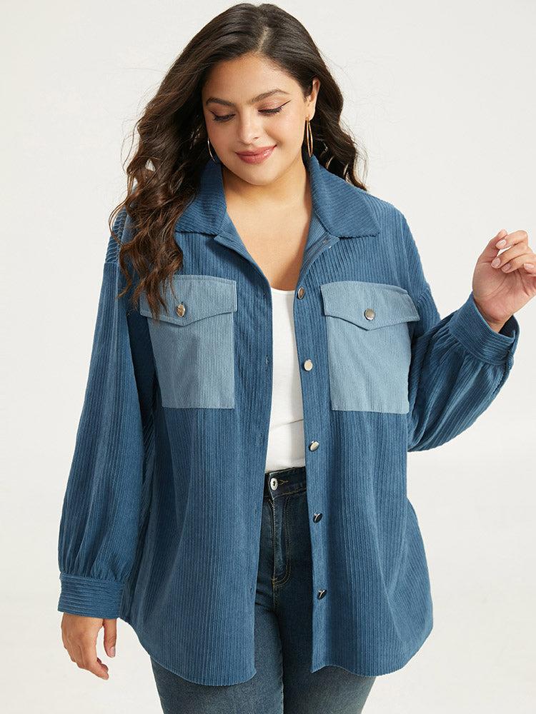Shop Two Tone Flap Pocket Button Up Corduroy Coat now and redefine your style with confidence at BloomChic. Tailored for mid and plus-size women. This trendy Outerwear Women, sizes 10-30. Season:Fall;Color:Aegean;Pattern Type:Plain;Details:Pocket, Button, Contrast, Texture;Pocket:It is perfectly sized to carry a phone.;Belt:No-belt;Closure Type:Button;Lining:No-lining