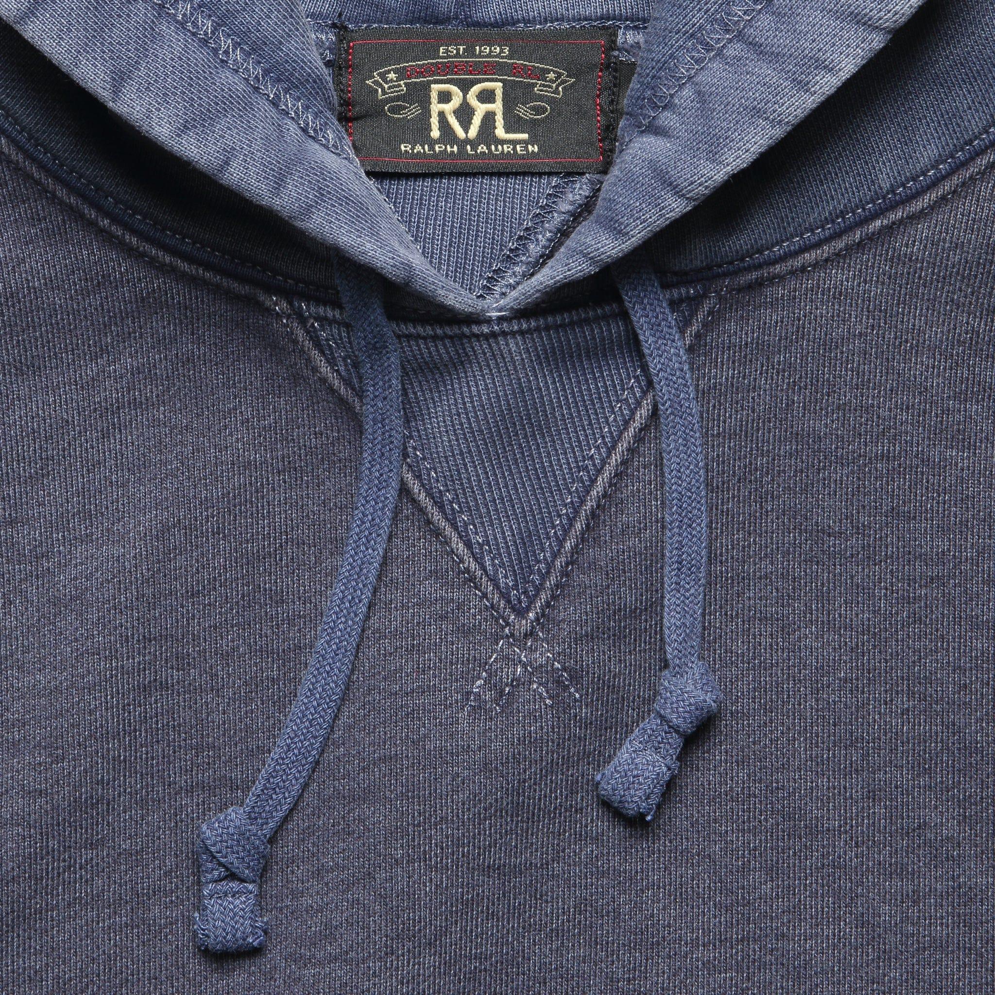 This Two-Tone Fleece Hoodie from Double RL is made from heavyweight cotton French terry that’s been garment-dyed and washed for a vintage, lived-in look and feel from day one. It features a kangaroo pocket at the front, ribbed side panels for extra comfort, a drawstring hoof with a double V-inset, and ribbed cuffs and hem for a classic finish. Heavyweight cotton French terry Drawstring hood with double ribbed V-inset Long sleeves with ribbed cuffs Ribbed side panels and hem Classic Kangaroo pocket Relaxed fit that runs true to size We recommend taking your normal size Materials: 86% cotton, 14% polyester The following measurements are for size Medium: Chest: 43” | Shoulder: 18” | Sleeve: 34 ½” | Length: 26”
