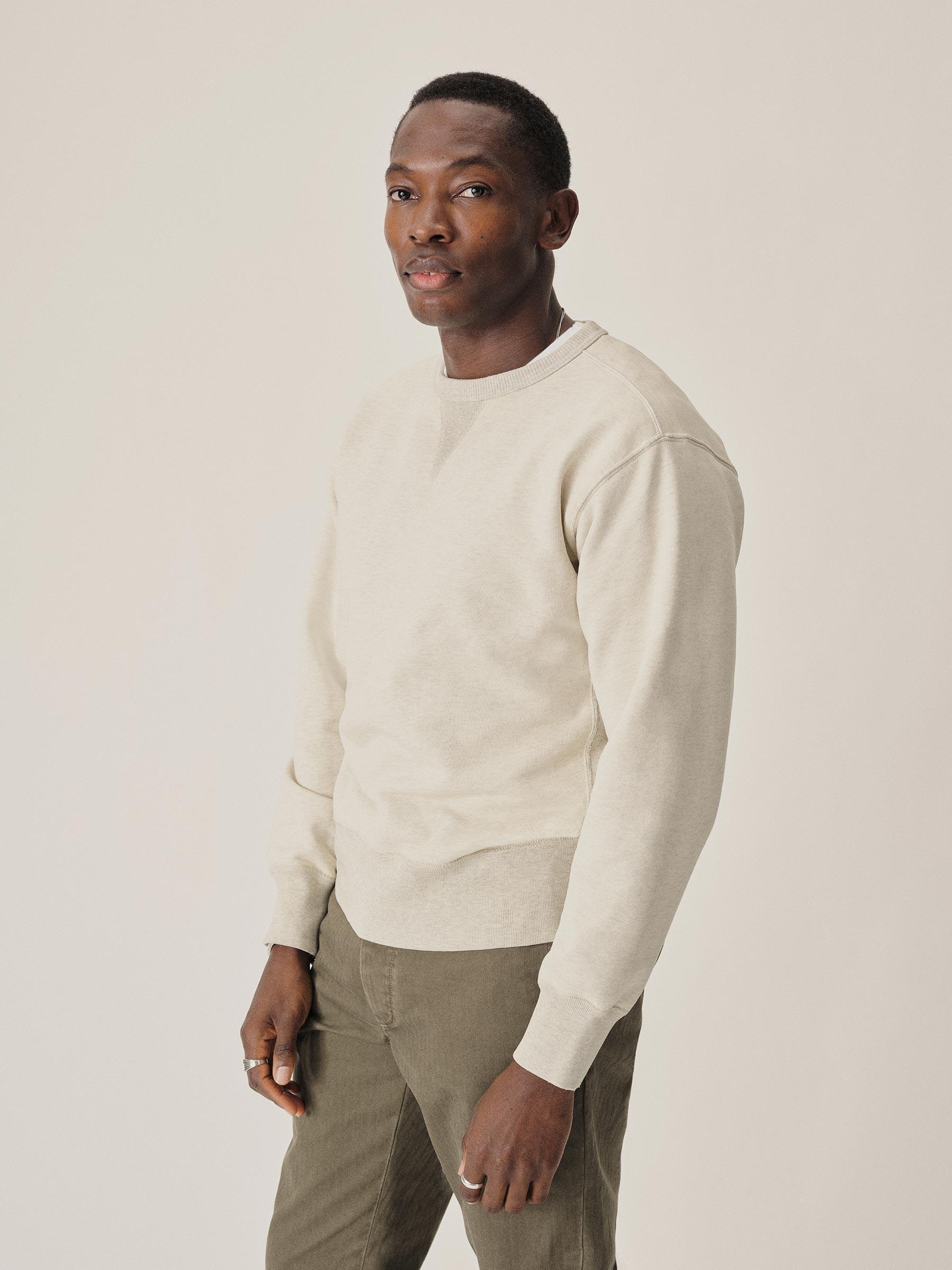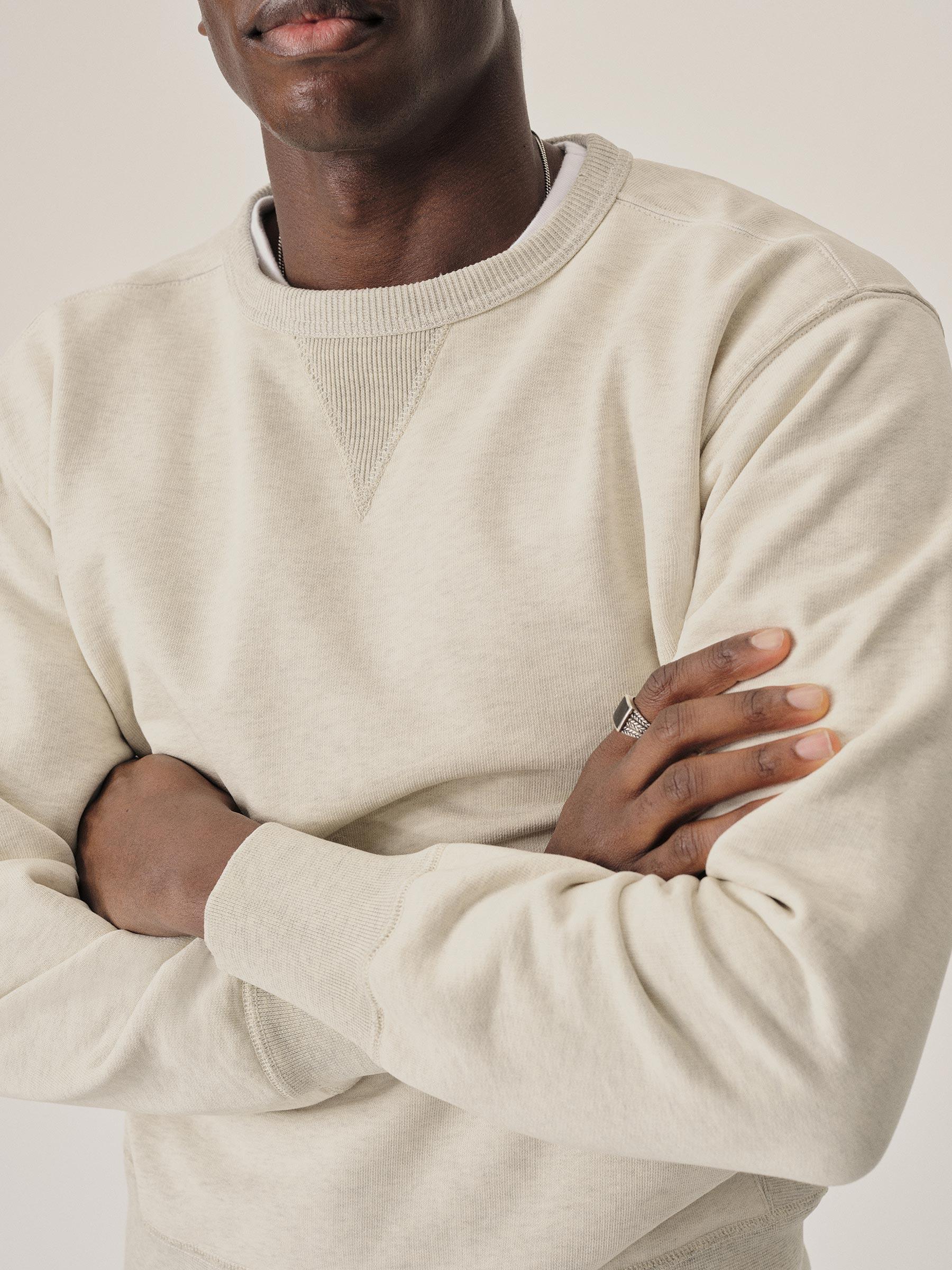 Two Tone Heather Oat Welterweight Double V Crew Sweatshirt
