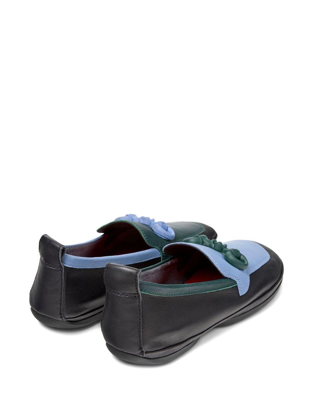 Camper two-tone leather loafers | Black | black, blue and green | leather construction | two-tone design | slip-on style | flat sole | Smooth Leather/Smooth Leather/Cork | Loafers | Shoes | Women