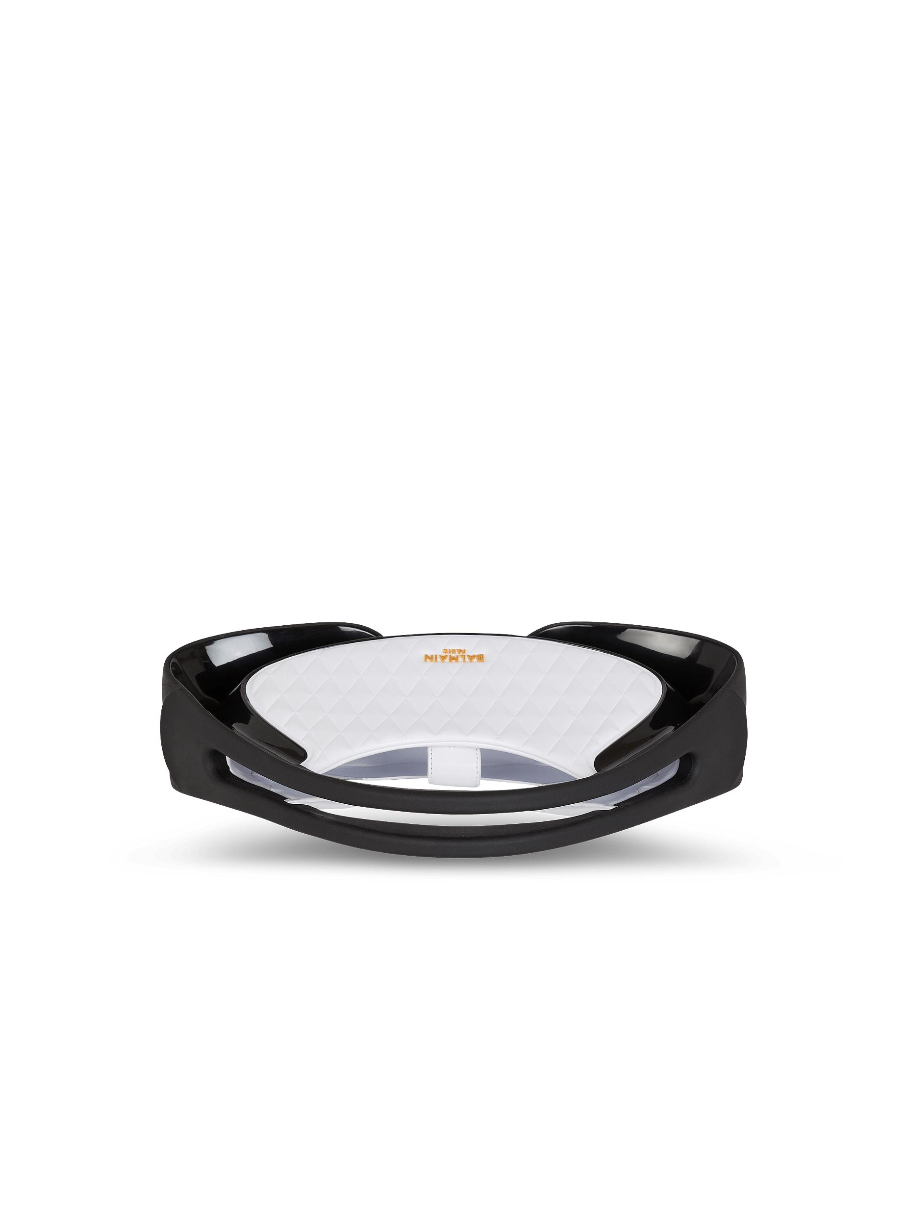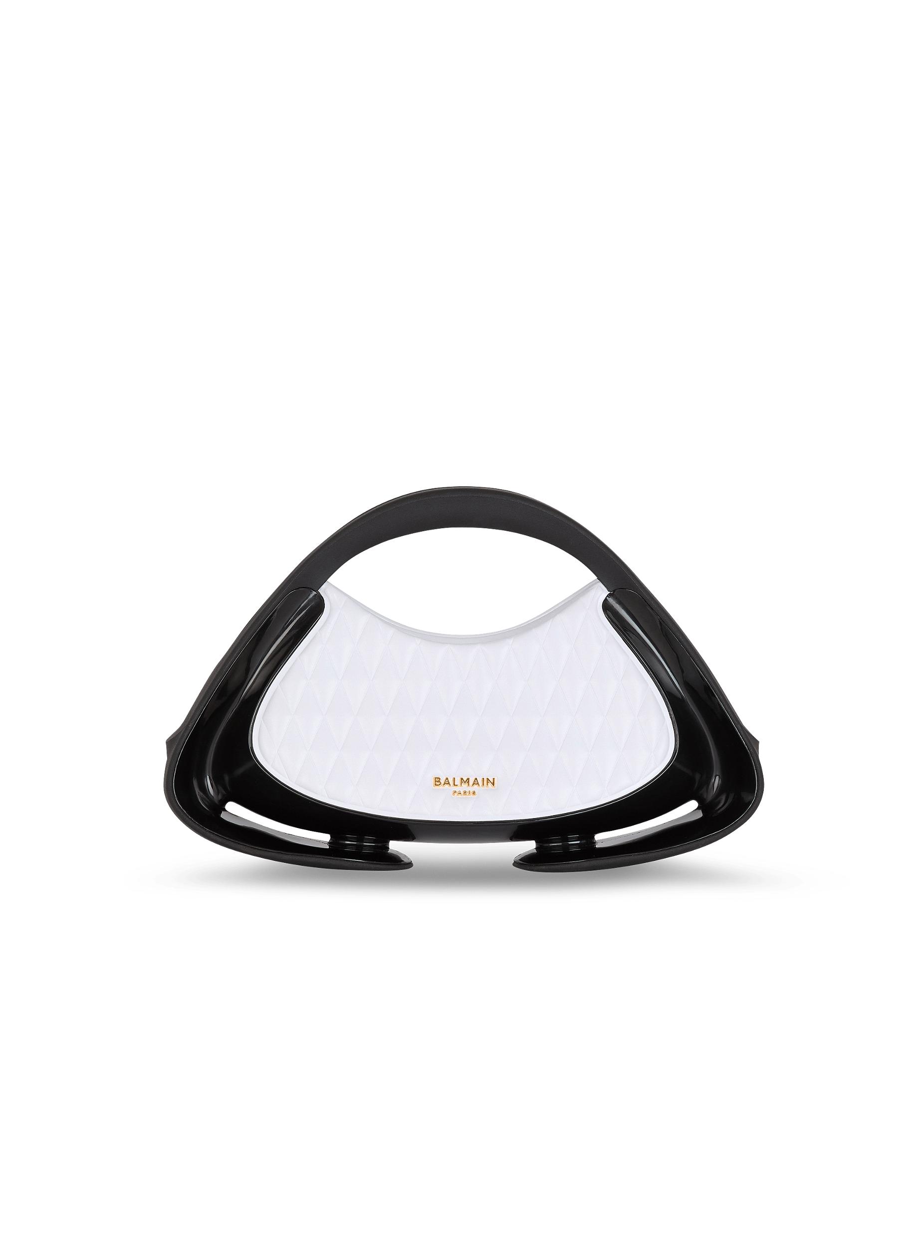Two-tone quilted medium Jolie Madame bagQuilted leather-look designMetal Balmain Paris logo on the frontCarry in the hand, on the shoulder or across the bodySoft rubber handlesCurved side piecesFaux leather and chain shoulder strap, adjustable and detachable with snap hooksGlossy curved side detailingMagnetic fasteningInside faux leather card pocket, embossed Balmain logoFaux leather liningGold and matte black hardwareDimensions: 22.5 x 35 x 8.5 cmMain material: 100% polyurethaneMade in ChinaItem: DN0DB903KTGL
