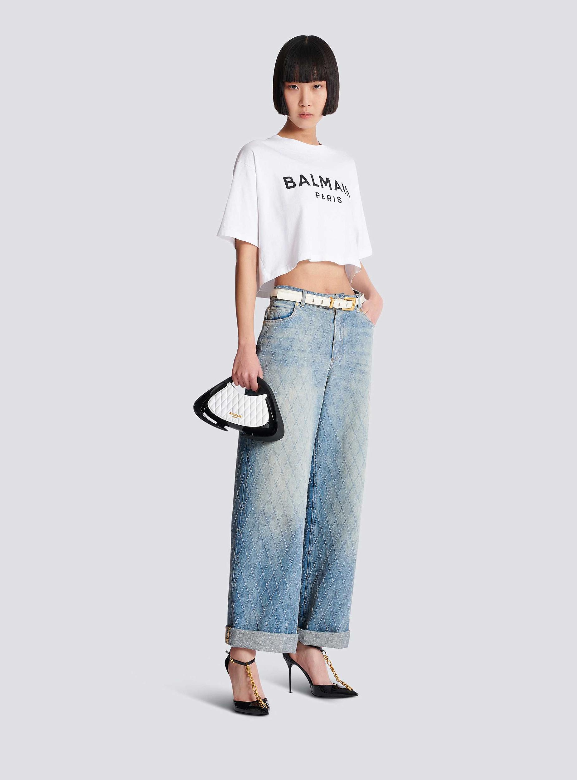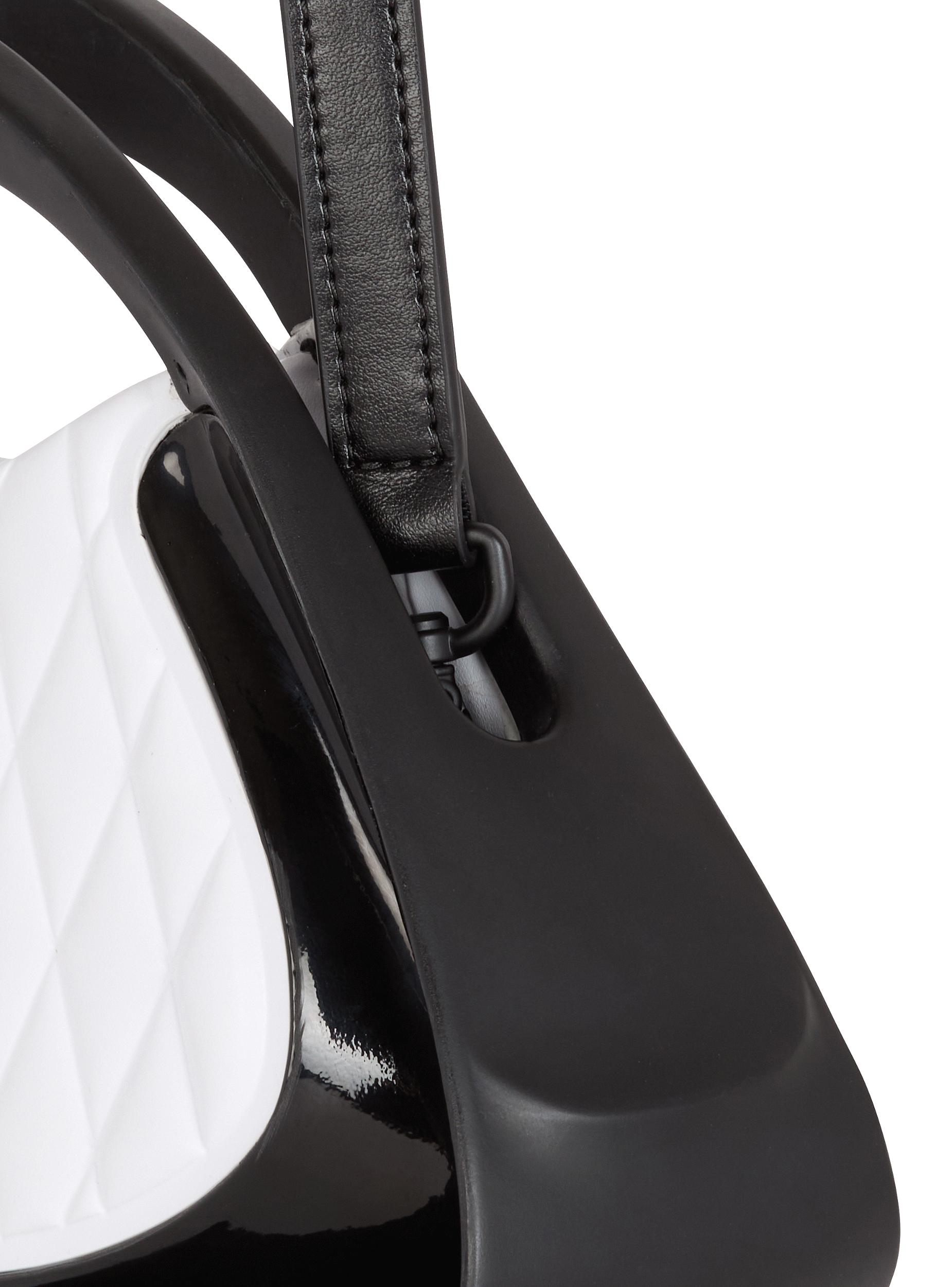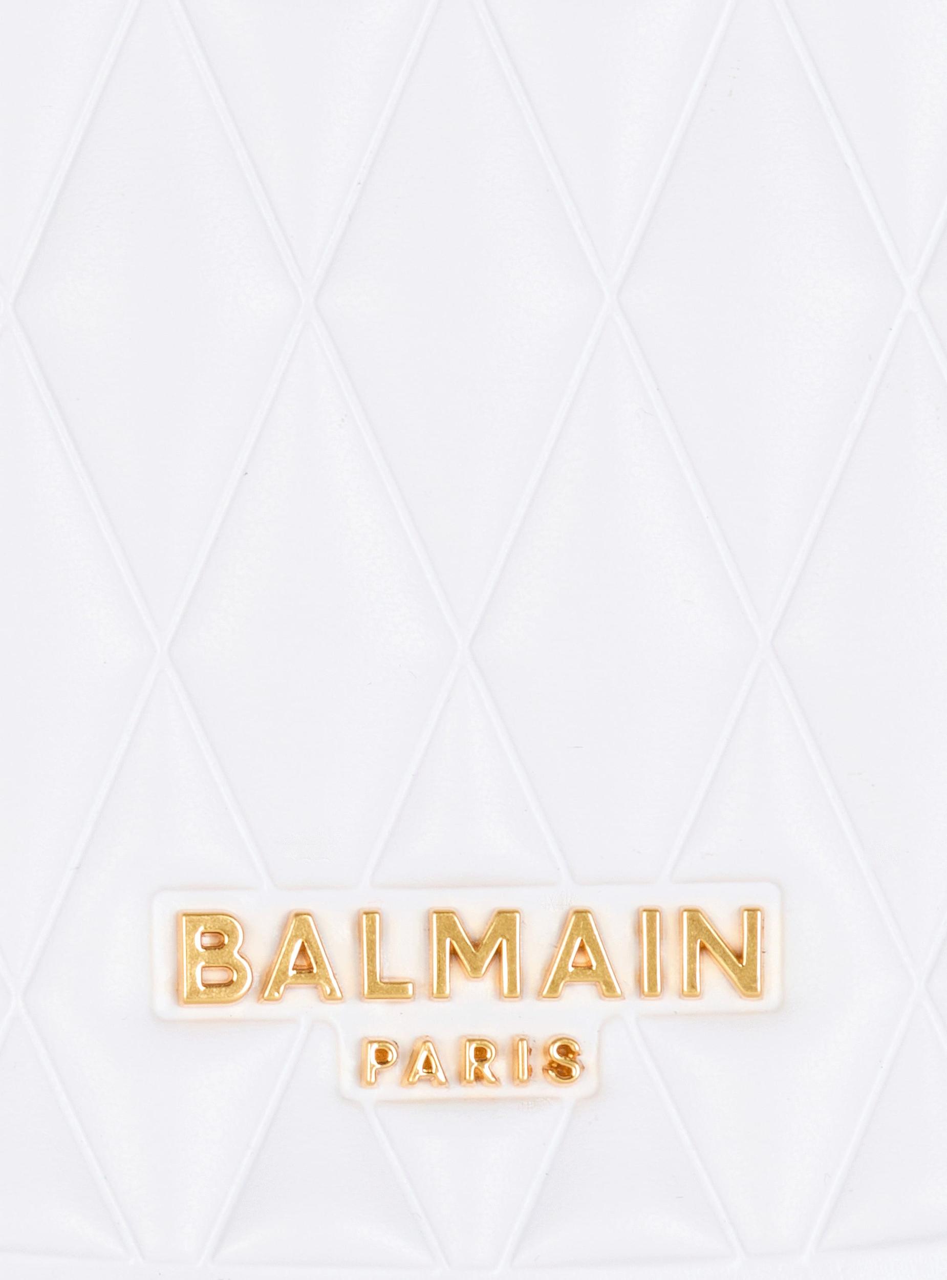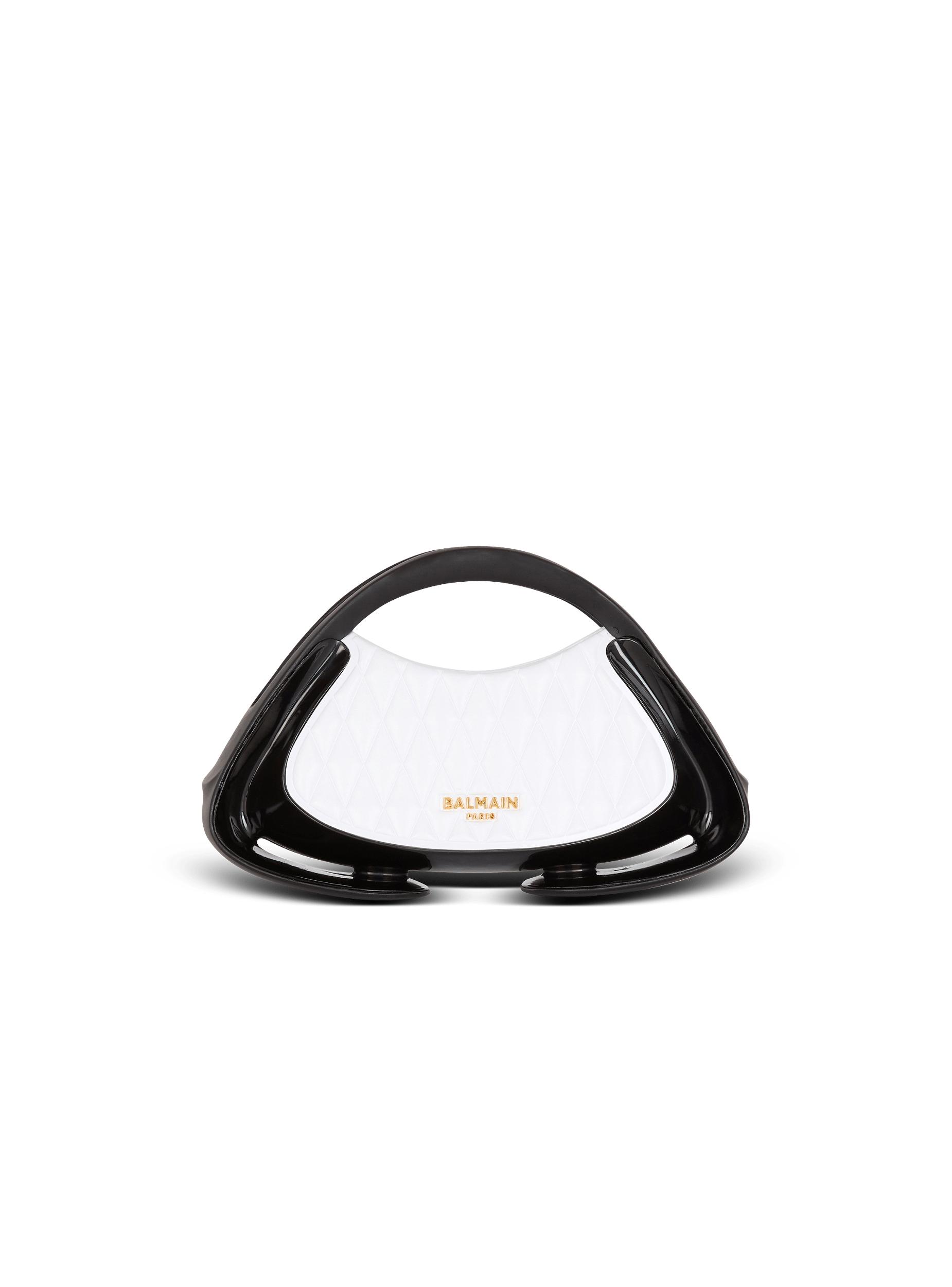 Two-tone quilted small Jolie Madame bagQuilted faux leather designMetal Balmain Paris logo on the frontCarry in the hand, on the shoulder or across the bodySoft rubber handlesCurved side piecesFaux leather shoulder strap, adjustable and detachable with snap hooksGlossy curved side detailingMagnetic fasteningInside faux leather card pocket, embossed Balmain logoFaux leather liningGold and matte black hardwareDimensions: 16 x 26 x 6 cmMain material: 100% polyurethaneMade in ChinaItem: DN0DA902KTGL