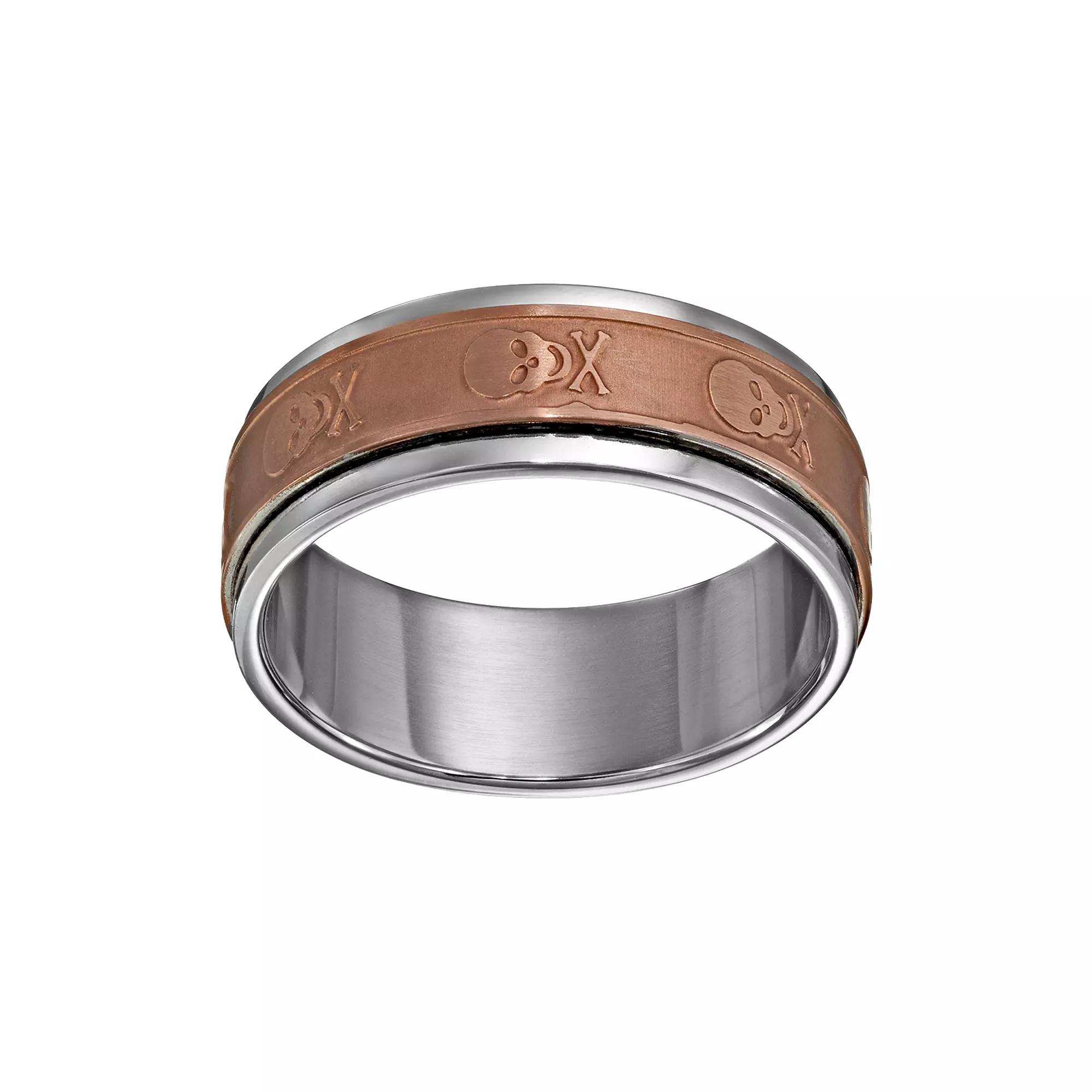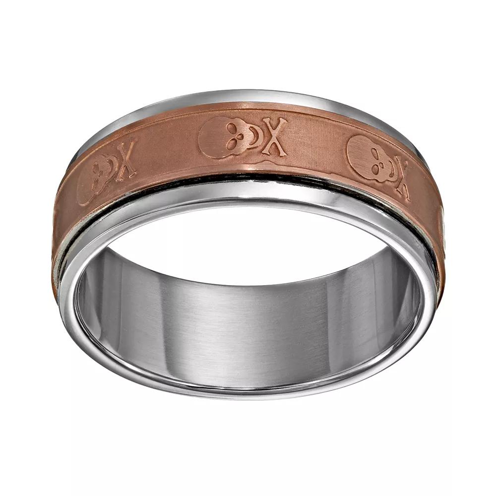 Add edgy style to your look with this men's two-tone stainless steel skull spinner band.RING DETAILS Width: 8 mm Metal: stainless steel, brown immersion-plated stainless steel Size: 10. Gender: male. Age Group: adult.