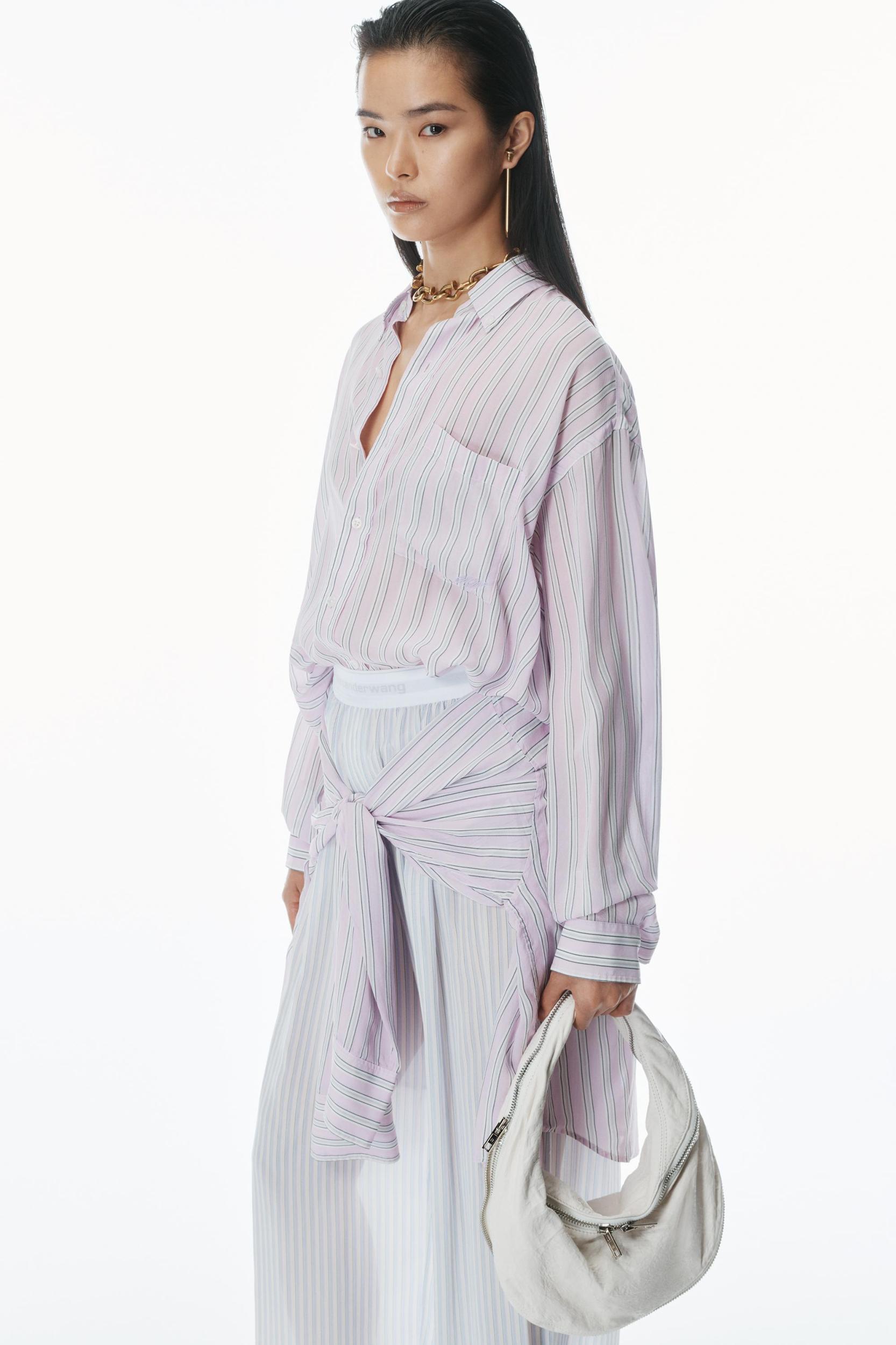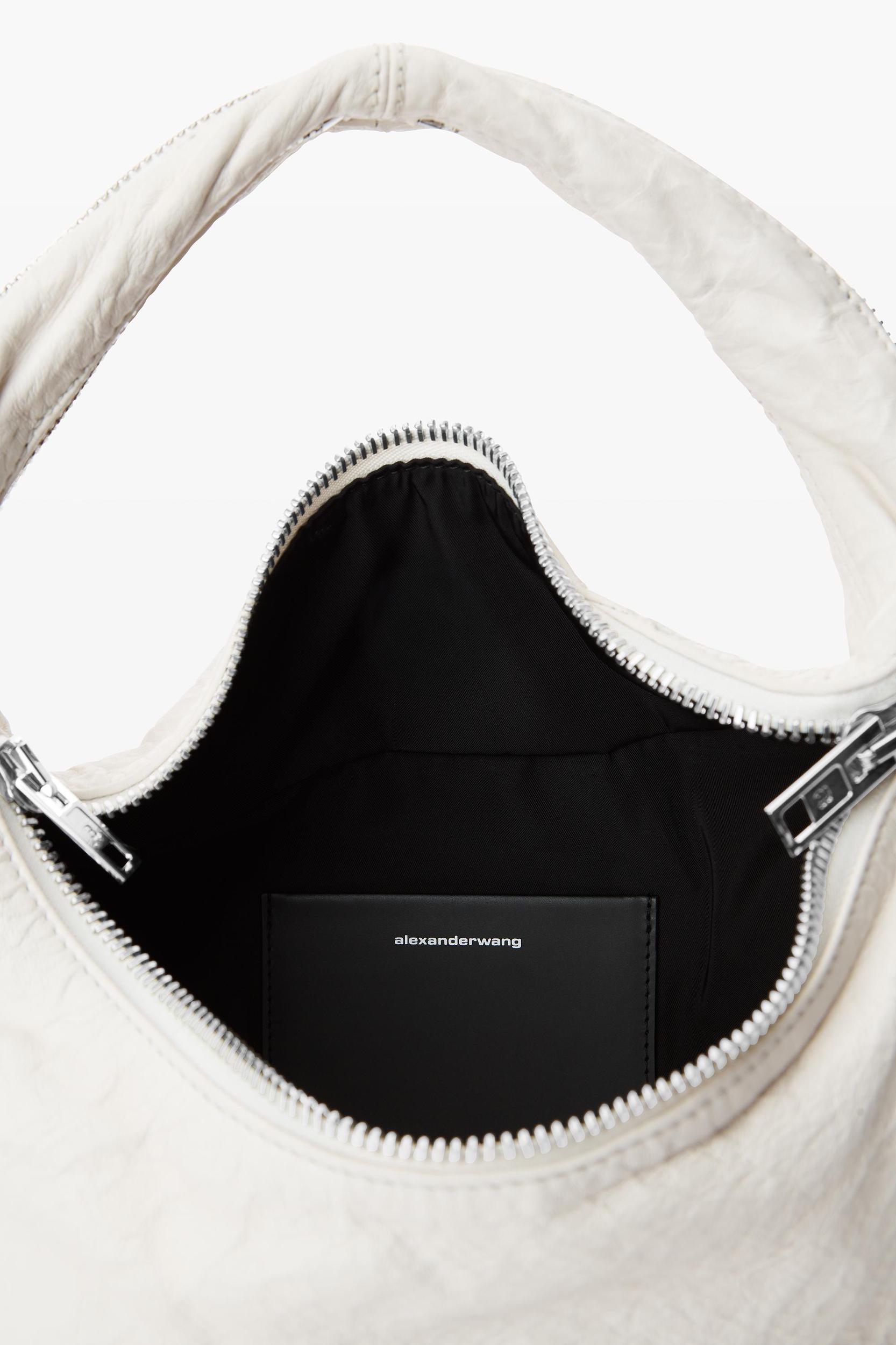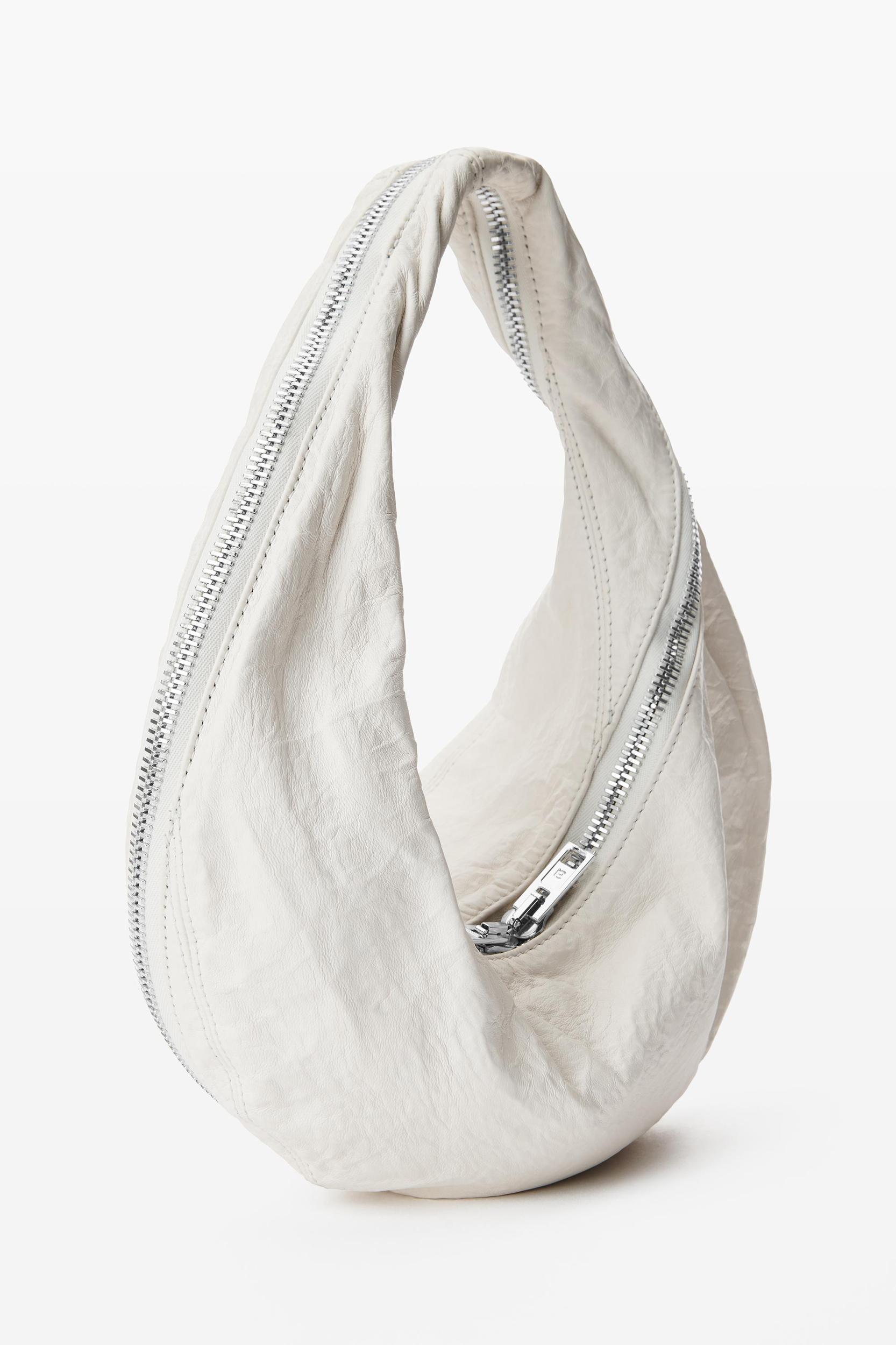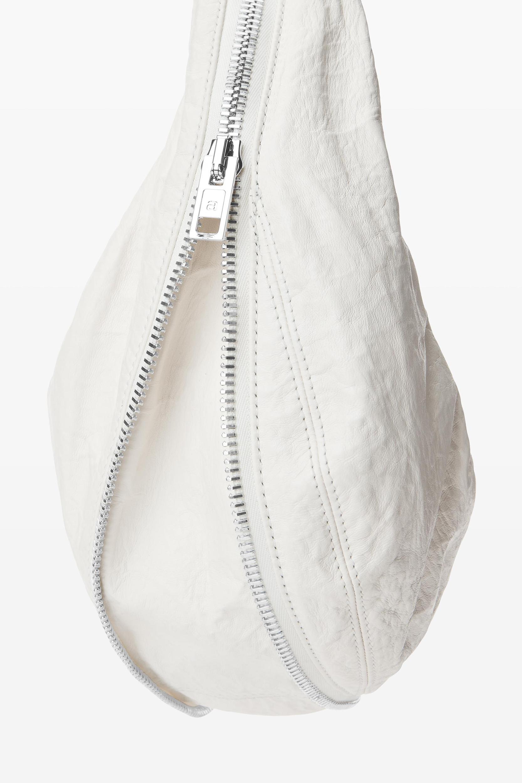 characterized by its memory leather, which retains the twyst's shape and wrinkle-effect character, this off-white handbag spotlights zipper detailing, offering an adjustable and expandable silhouette. an embossed logo at the bottom completes this style, fastened by a top-zip closure.