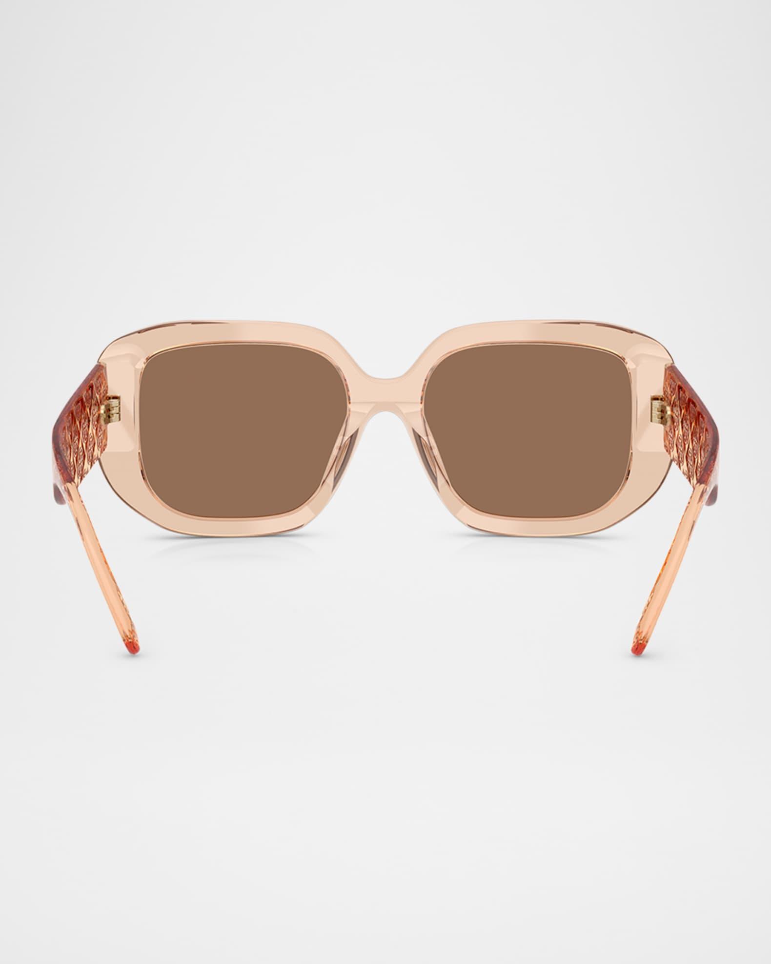 Tory Burch "TY7218U" square sunglasses in acetate Eye/bridge/temple (in mm): 54-18-140 Gradient lenses Saddle nose bridge Thick, tapered arms Temples are embossed with T monogram Metal cap and laser logo embellishes the hinges Comes with case and cloth Acetate Spot clean 100% UVA/UVB protection Made in Italy Proposition 65 warning for California residents