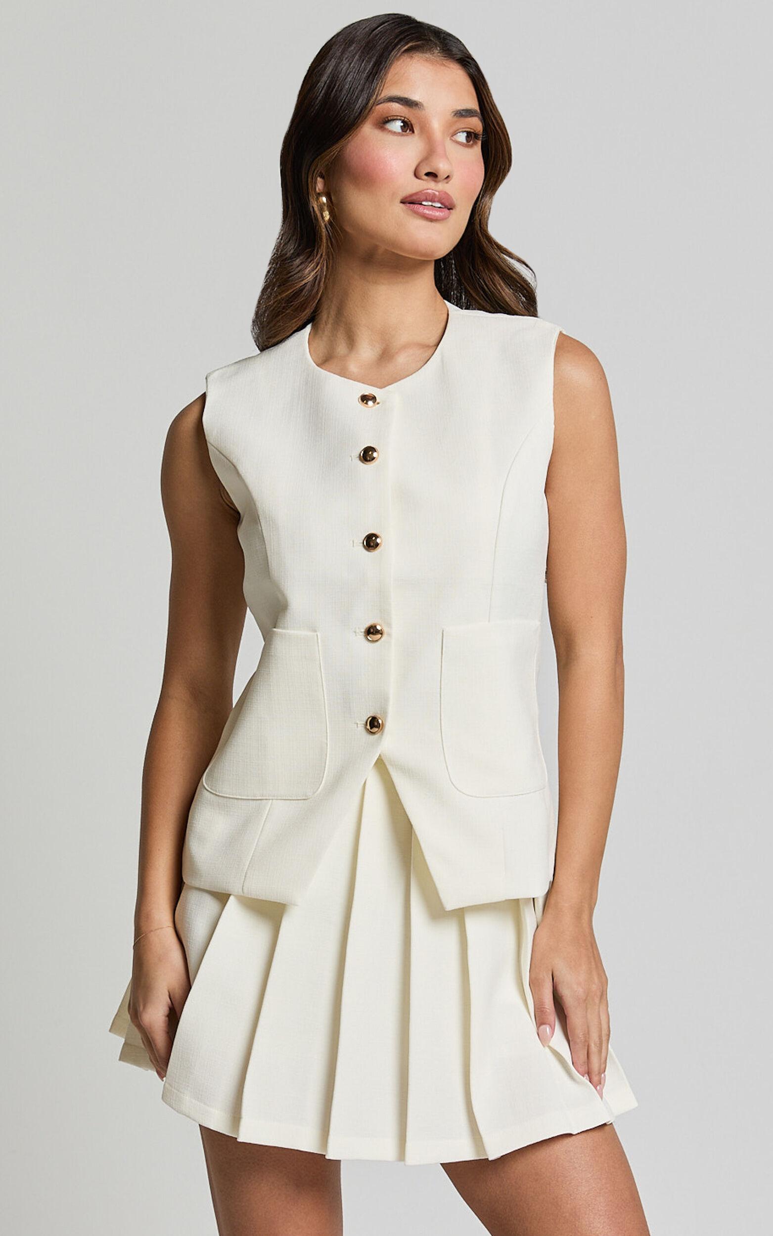 Say hello to your new go-to top, the Tyla Scoop Neck Pocket Detail Button Up Vest in White! Crafted from a heavy weight woven polyester fabric, this fashion-forward piece is perfect for any occasion. Whether you're heading out for a party day with friends or simply enjoying a weekend activity, this top has got you covered. The scoop neck adds a touch of femininity, while the pocket detail and button up design give it an extra dose of style. Pair it with jeans and heels for an effortlessly chic look that will turn heads wherever you go.Product Details:Buttons detailFront pocketsScoop necklineHeavy weight wovenPolyester materialParty day suitableWeekend wearMaterial and Care100% PolyesterLow / No stretch