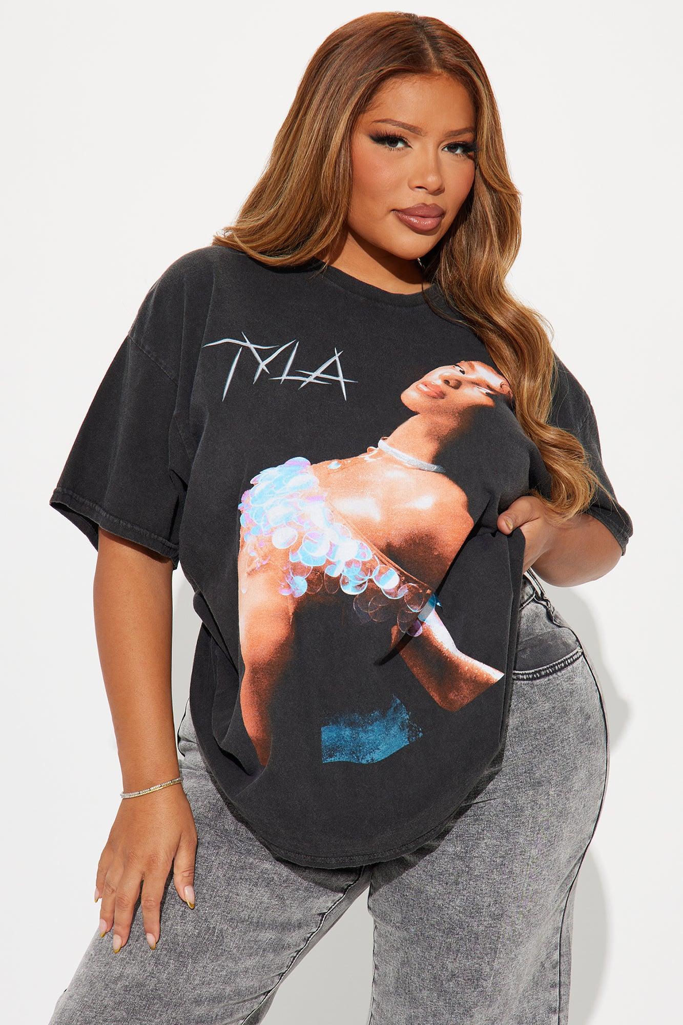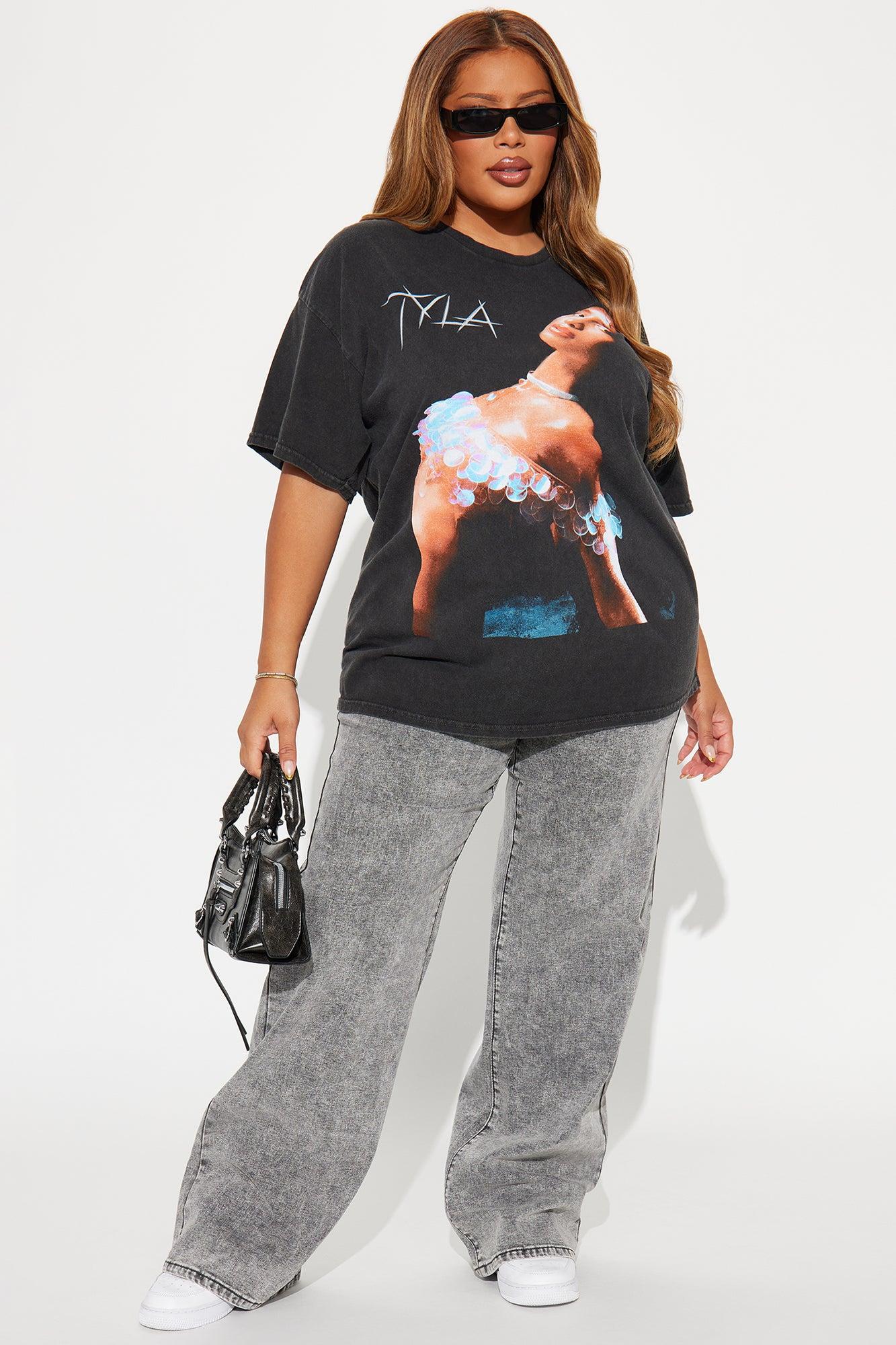 Available In Black. Crew Neck Short Sleeve Front Screen Tyla Graphic Washed Stretch Disclaimer: Due To The Printing and Wash Process A Difference In Saturation May Occur. Each Garment Is Unique. 100% Cotton Imported