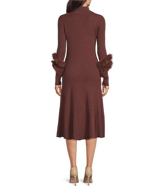 tyler boe Celia Knit Mock Neck Long Sleeve Faux Fur Cuffed Half Zip Midi Dress