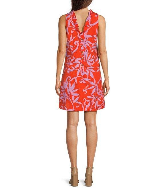 From tyler boe, this dress features: Woven fabrication Ruffle boat neckline Sleeveless Side pockets Ruffle v-back High-low hem Button back detail Linen/cotton Hand wash Imported.