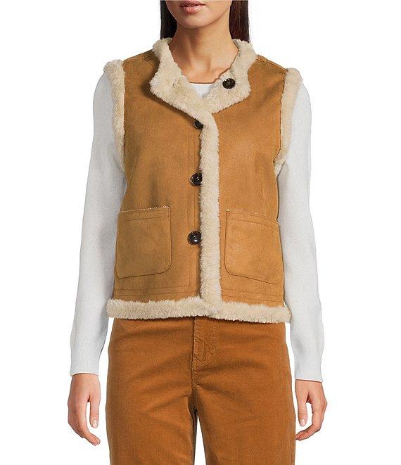 tyler boe Highland Crew Neck Patch Pocket Reversible Sherpa Sleeveless Vest