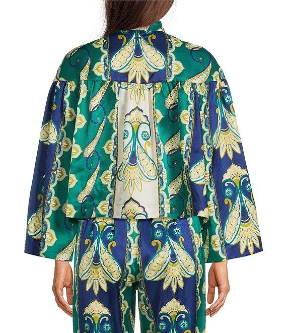 tyler boe Maeve Cabana Foulard Print Mandarin Collar 3/4 Sleeve Coordinating Top