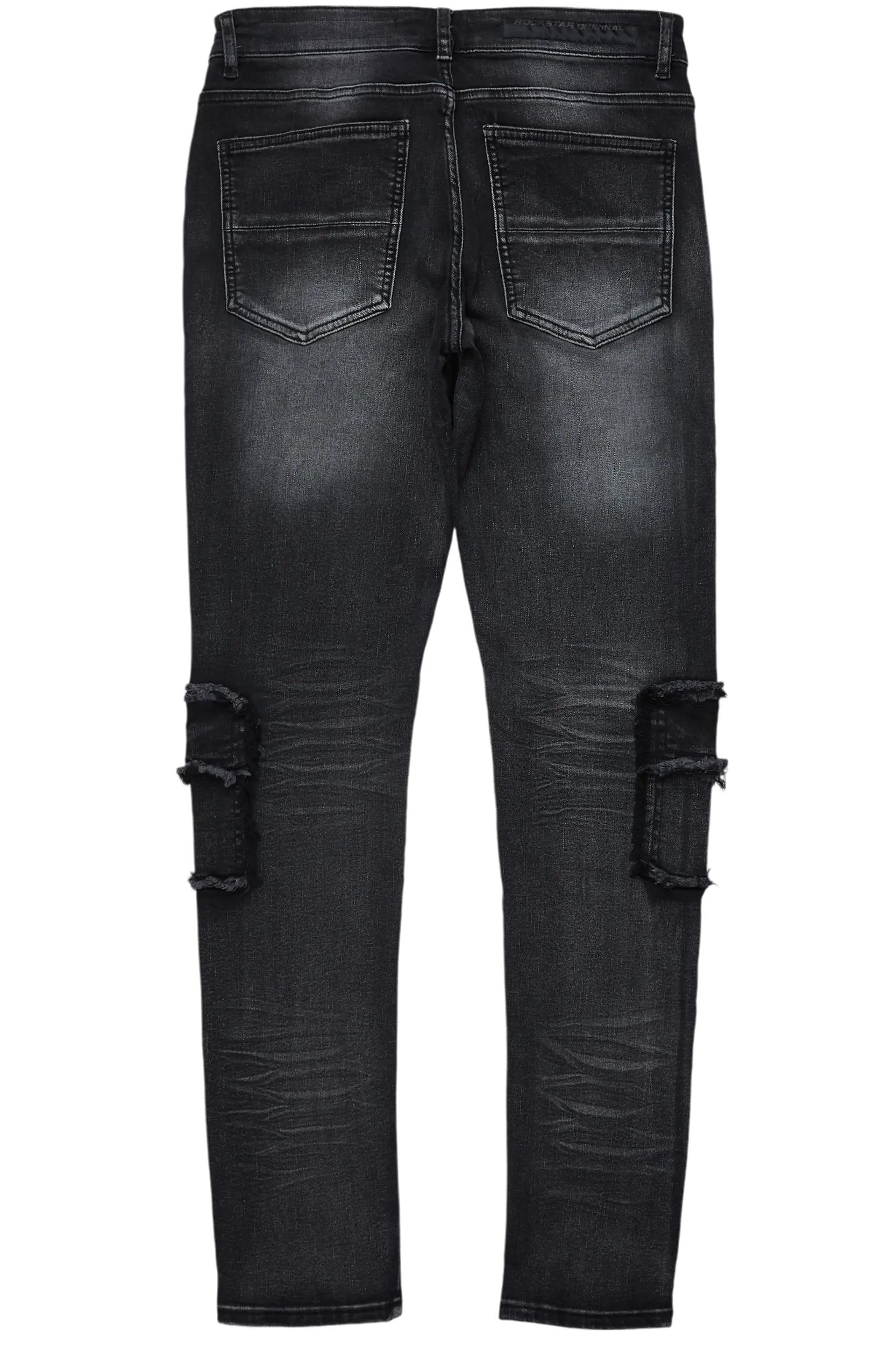 An urban skinny denim cargo jean for men in dark grey. Designed with organic cotton and distressed detailing for a dope streetwear style. Zip fly with button closure 9-pocket build Frayed seams Skinny-fit *Our denim was designed to be a slim fit cut. We recommend you to size up one size if you want a slightly looser fit.