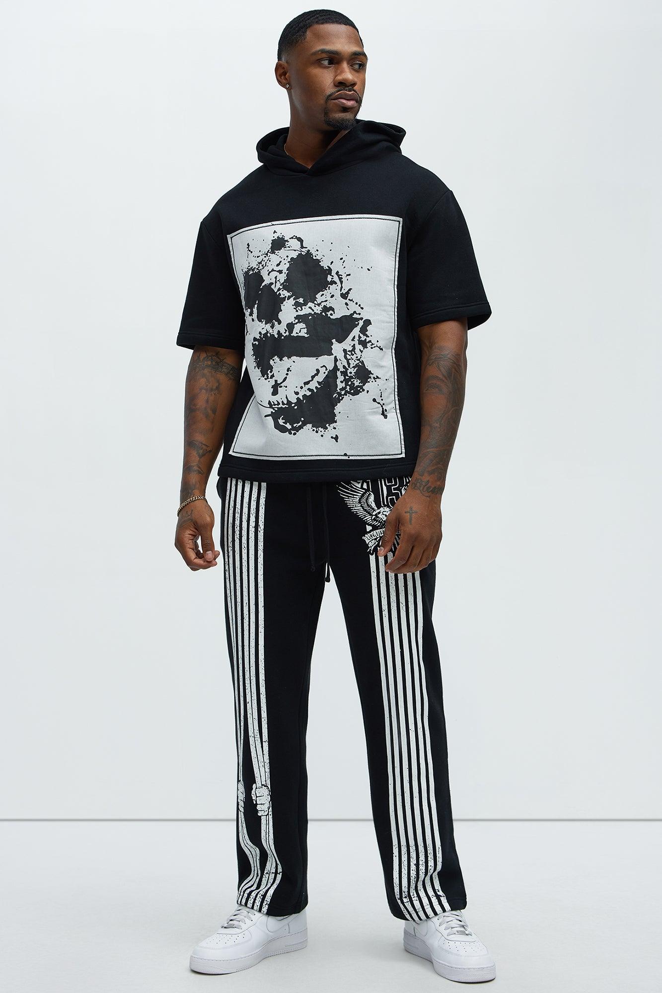 Available In Black. Elastic Waist Drawstring Side Pockets Back Pocket Stripe Detail 60% Cotton 40% Polyester Due to the Printing Process a Difference In Saturation May Occur. Imported